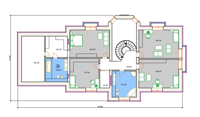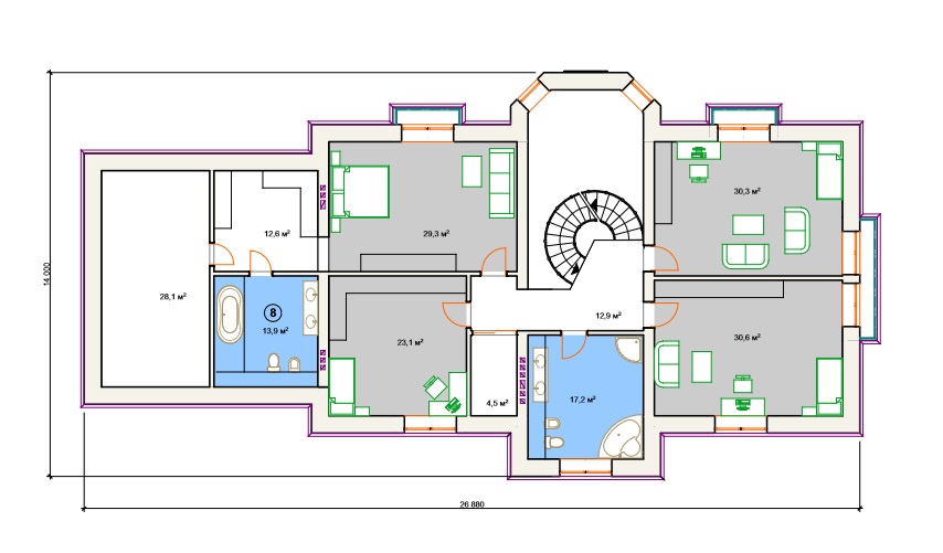 Что касается мансарды, заказчик должен определить, какой вид будет иметь мансардный этаж. Мансарда может быть выполнена в виде одной большой комнаты или же иметь несколько помещений. В данном случае все зависит от пожеланий заказчика. На этаже могут располагаться игровая комната, кабинет и спальня. В некоторых случаях мансарда дополняется с террасой. Кроме того, мансардный этаж может быть выполнен в виде веранды.