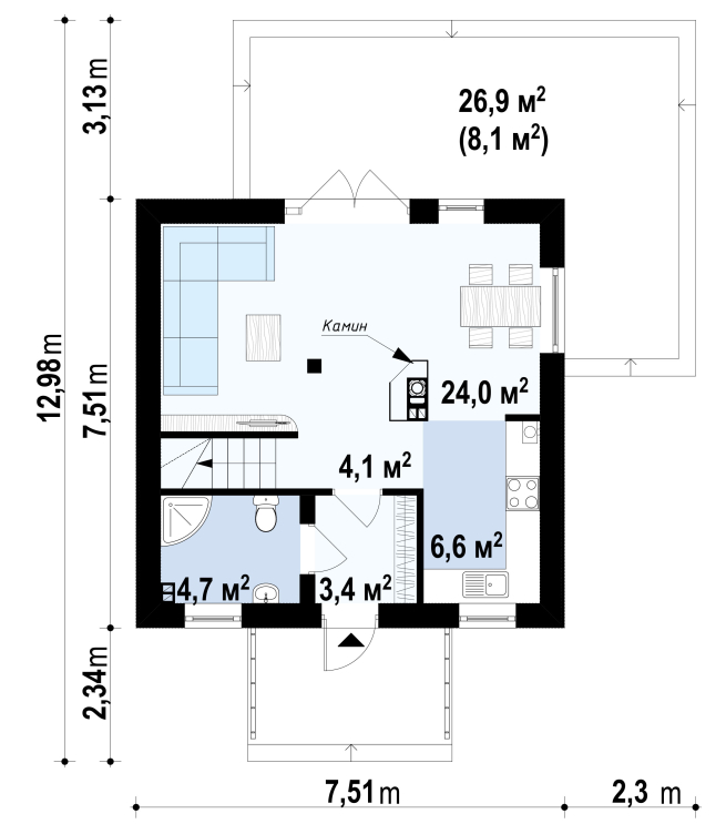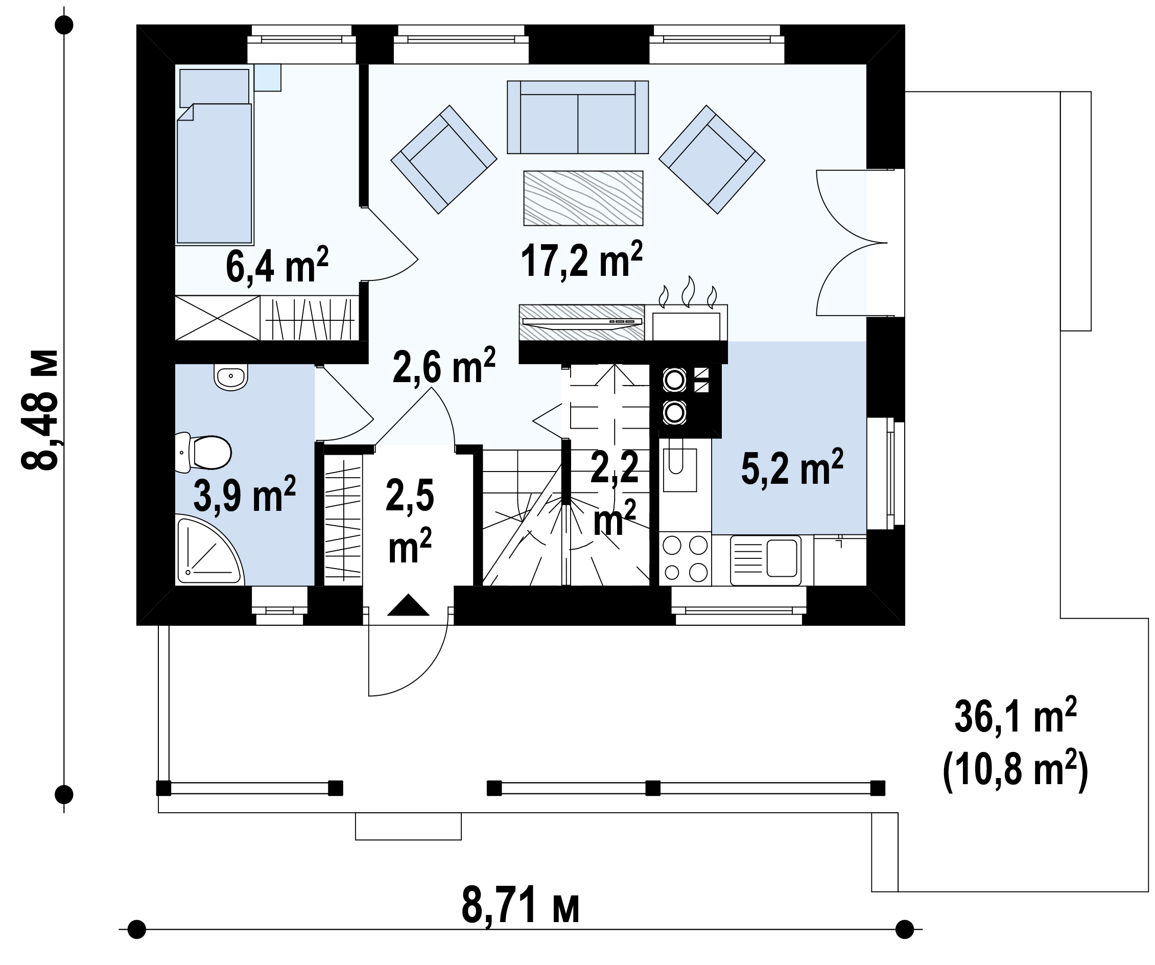 - Возможность получить эксклюзивный дом по доступной цене (по сравнению с двухэтажными и трехэтажными коттеджами).