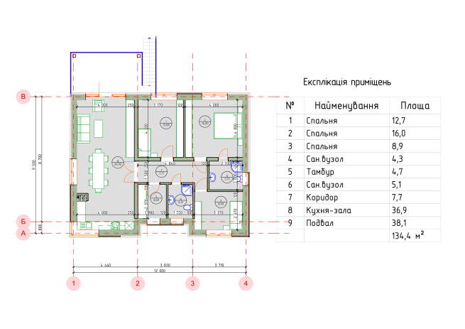 Количество спалень: 3