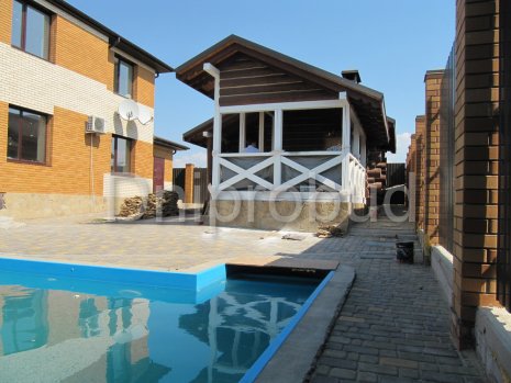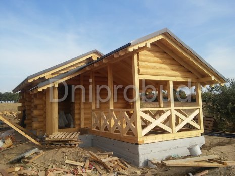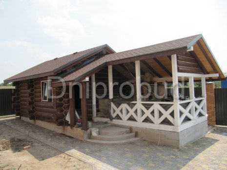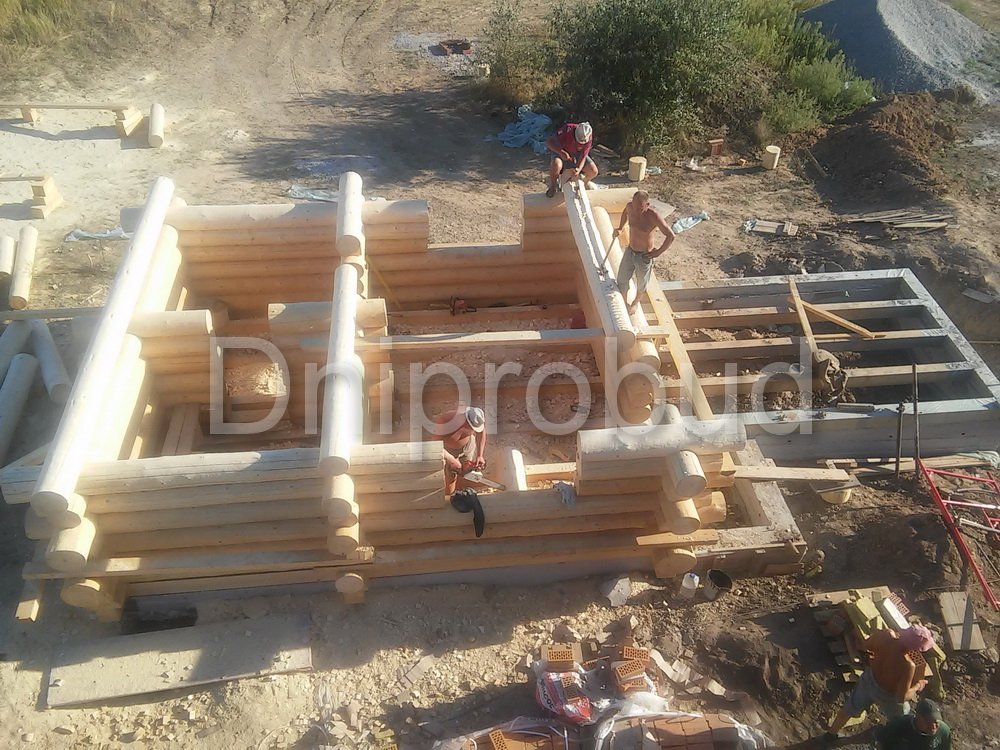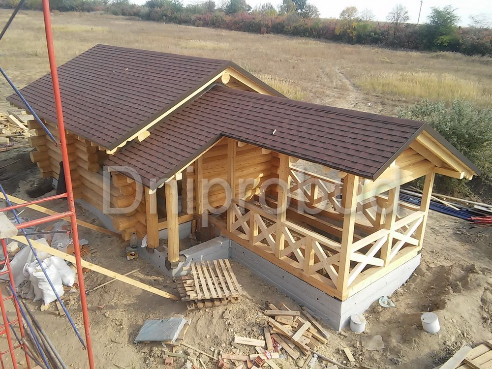 Строительство бани 5*6 из дикого сруба с беседкой 5*4 в Запорожье (с. Кушугум Запорожской области). Барбекю с тандыром и печью.