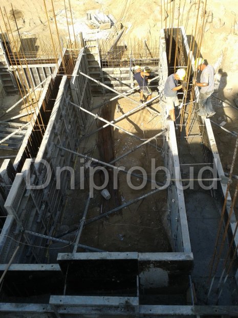 - Фундамент: монолитный железобетонный с использованием многоразовой опалубки.