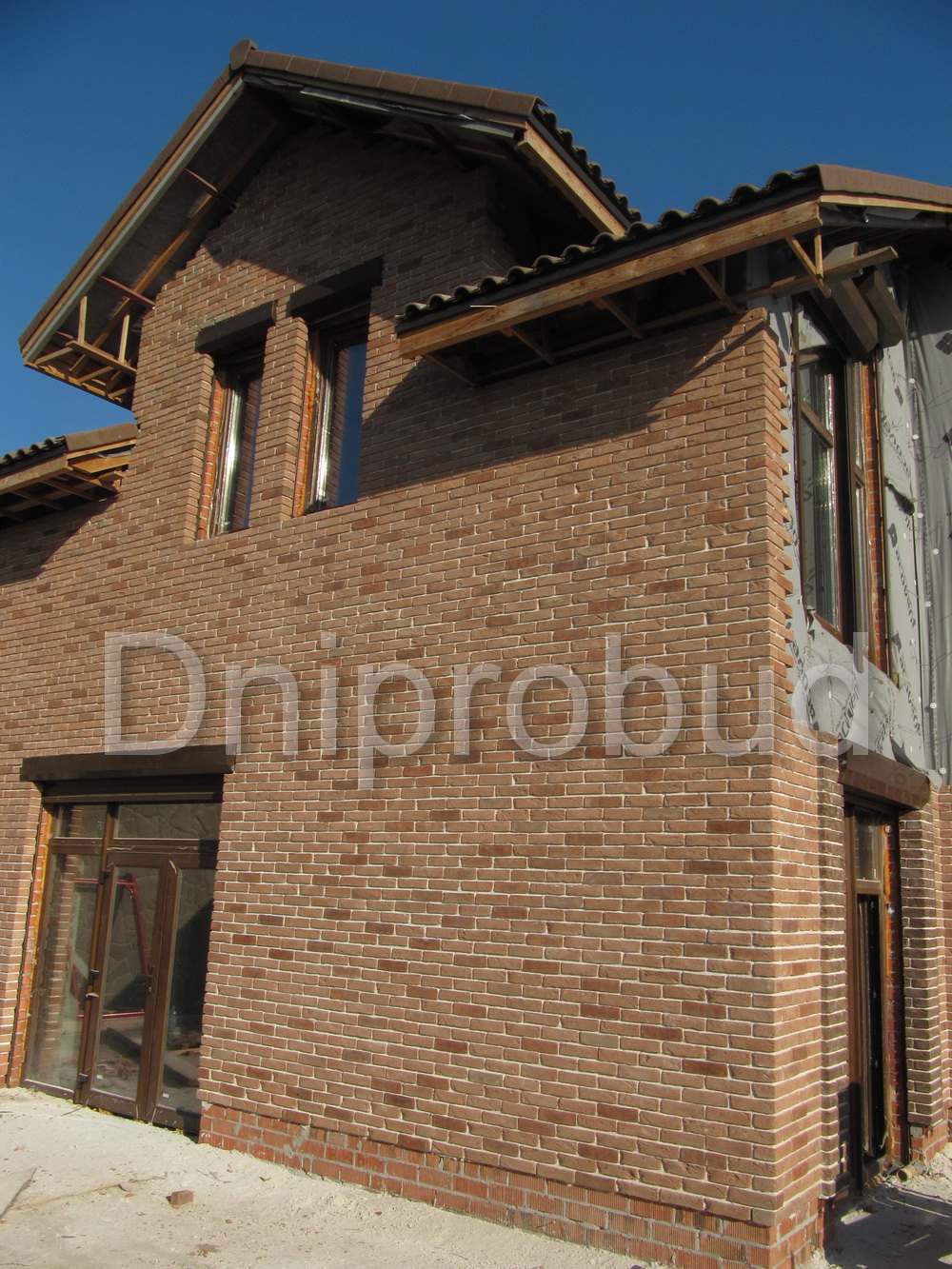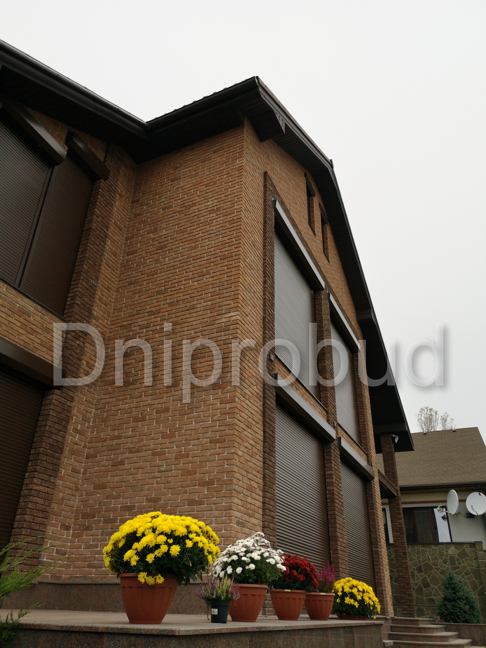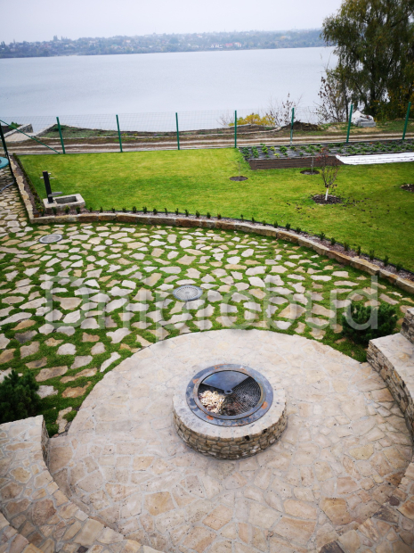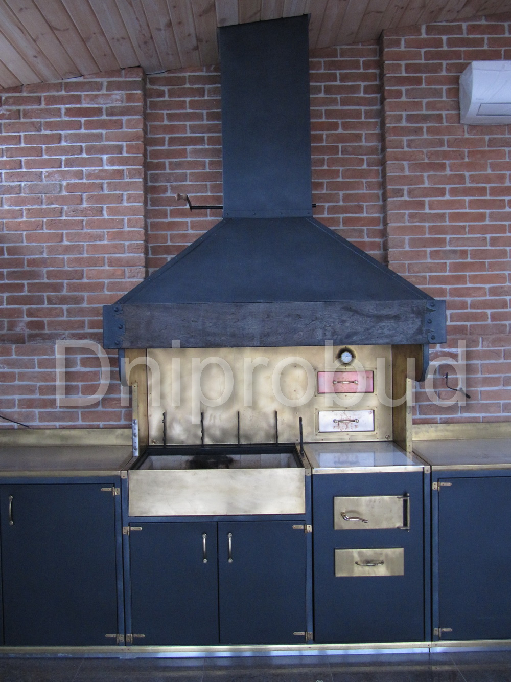 Слева от коттеджа специалистами компании Днипробуд был пристроен гараж для водного транспорта и, с помощью монолитного железобетонного перекрытия, большая крытая терраса с раздвижной системой дверей и большим медным барбекю.