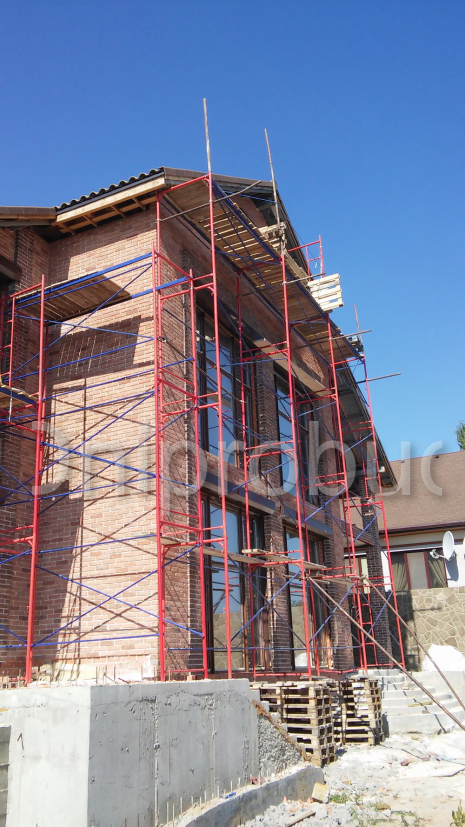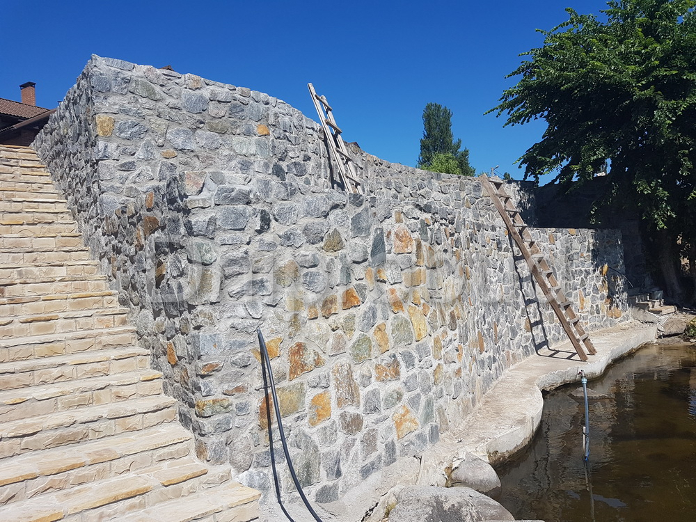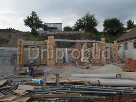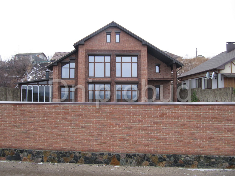 - Стены: каркас из бетонных колонн + ракушечник толщиной 400 мм + каменная вата 100 мм + керамический кирпич ручной формовки. Отделка цоколя: гранит. Цокольное помещение: винный погреб и котельная.