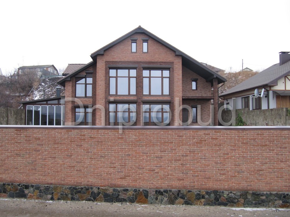 Трёхэтажный дом с цокольным этажом под половиной здания. Год постройки: 2013-2014.