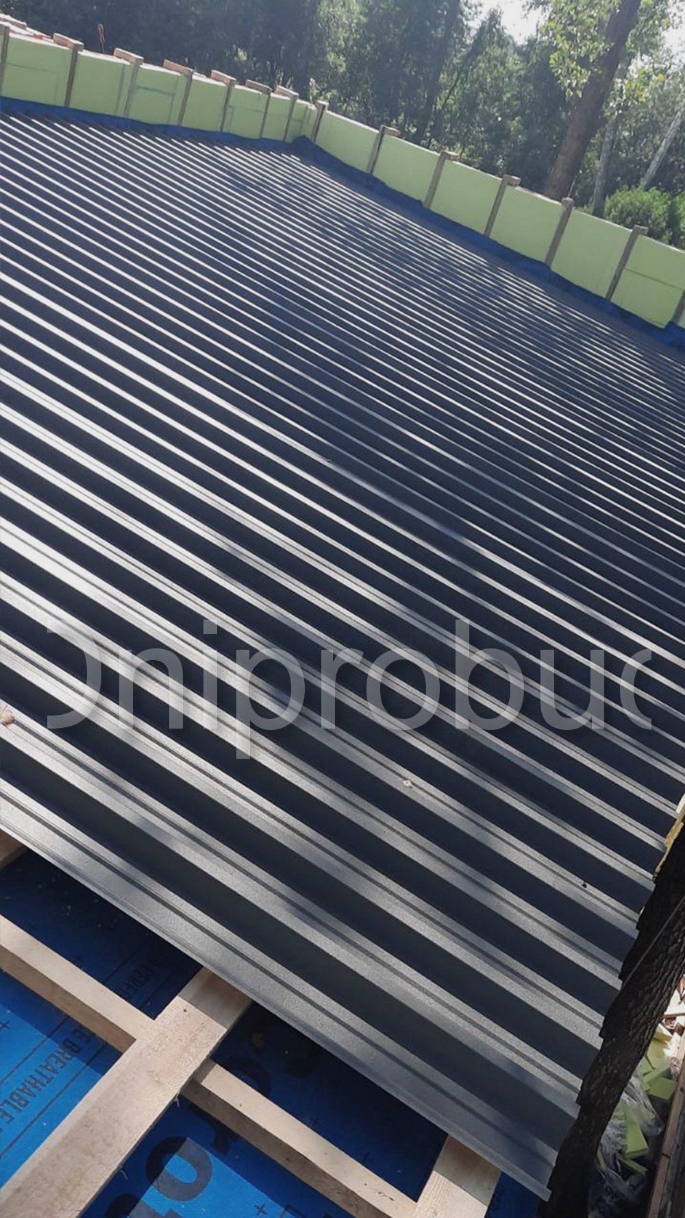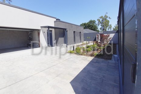 Все оборудование, связанное с подготовкой и охлаждением воздуха, размещается на крыше основного дома. Подача теплого и холодного воздуха организована без видимых приборов отопления и внутренних блоков кондиционеров.