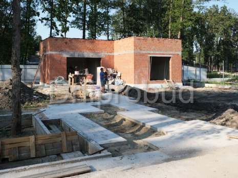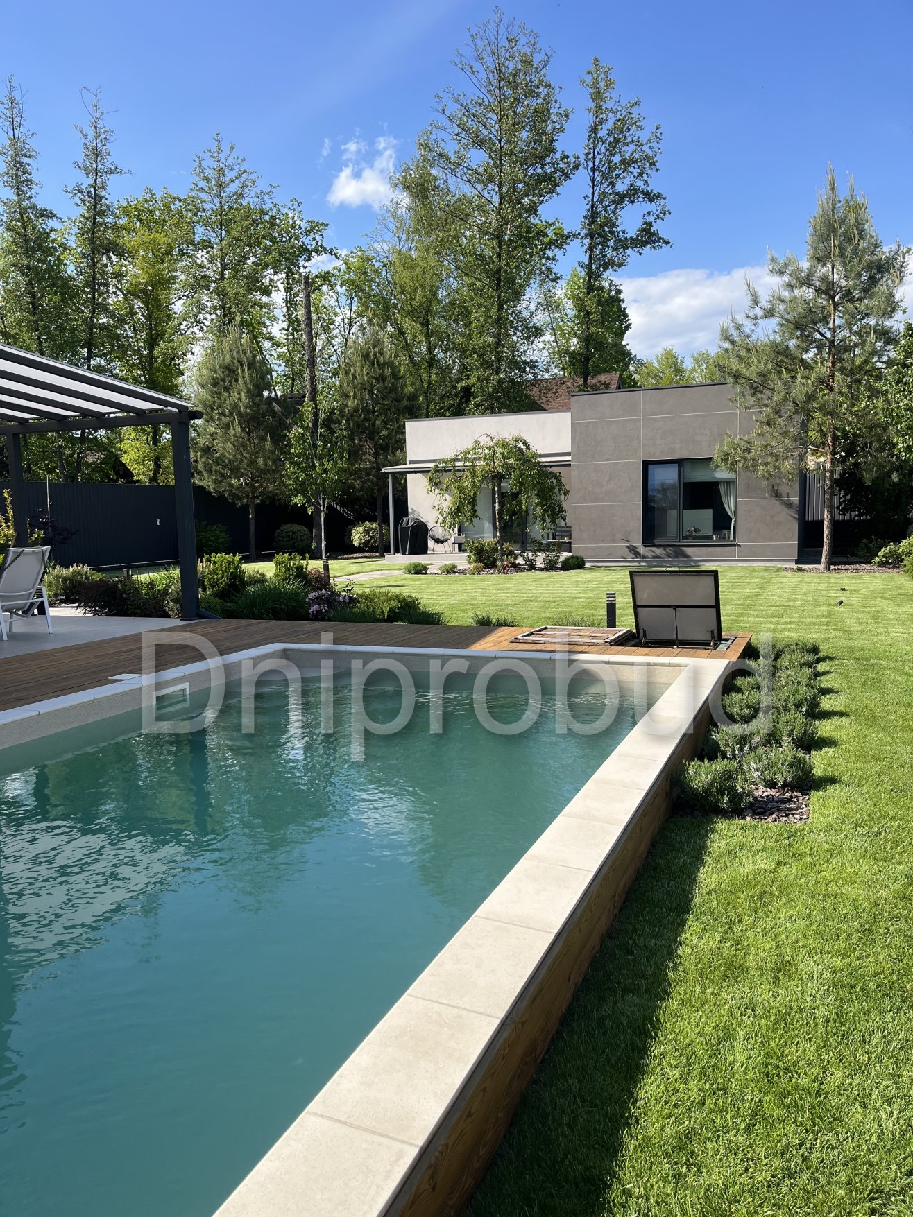 Параллельно проводились работы по озеленению и обустройству бассейна в зоне отдыха.