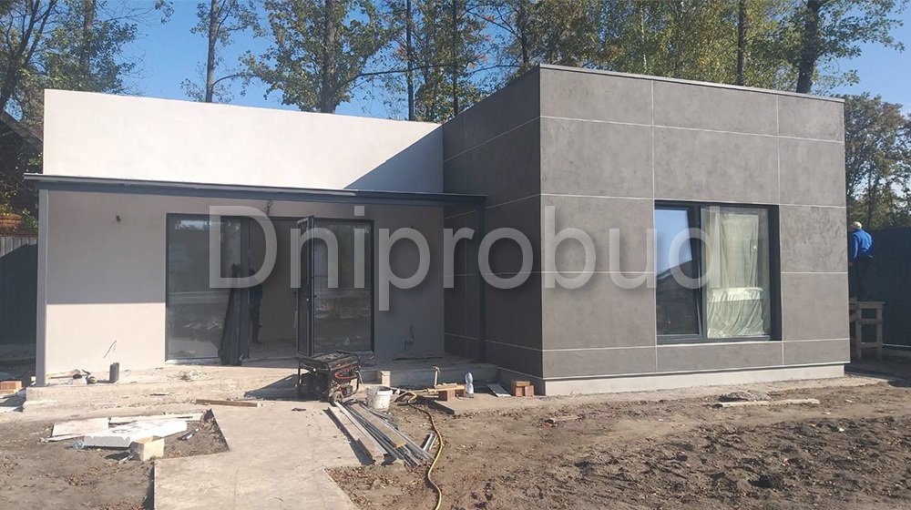 Большой одноэтажный дом в с. Круглик, Киевской области, построен по индивидуальному проекту заказчика.