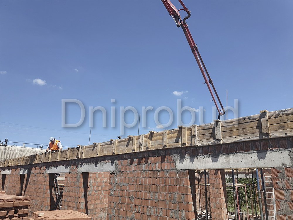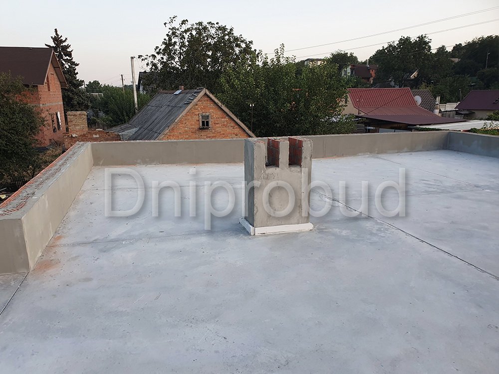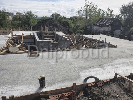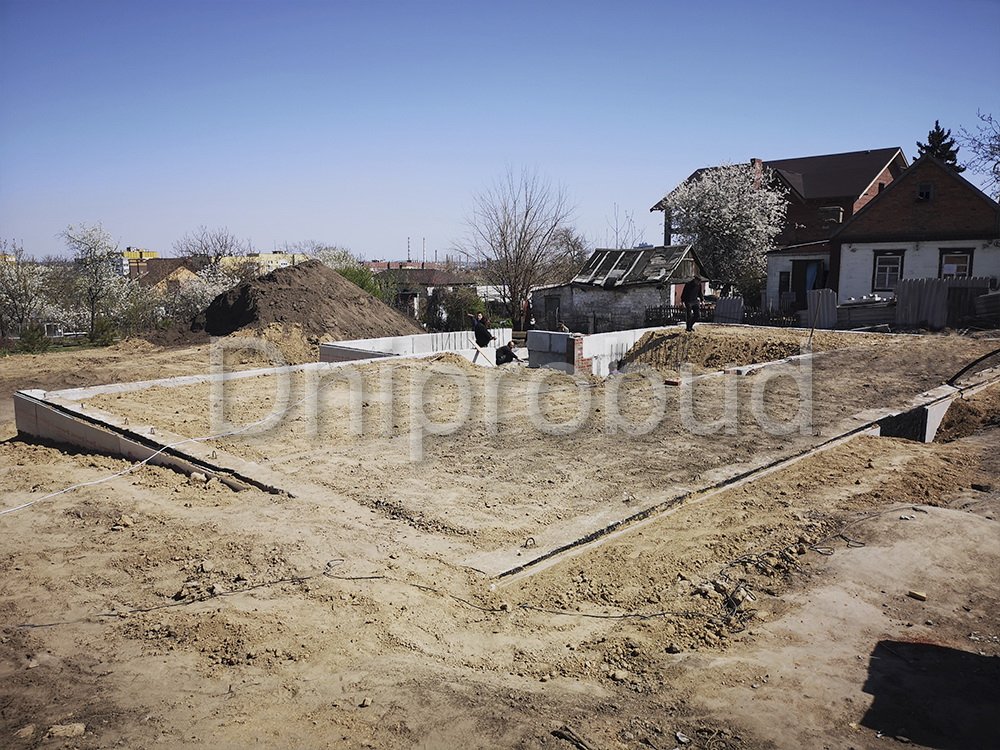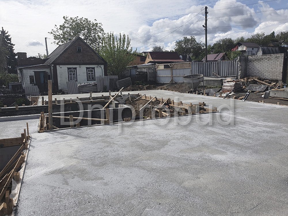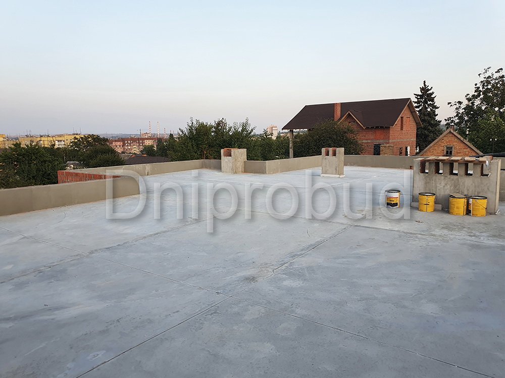 Строительство большого одноэтажного дома с плоской кровлей на правом берегу г. Днепр по индивидуально разработанному проекту DB 9.