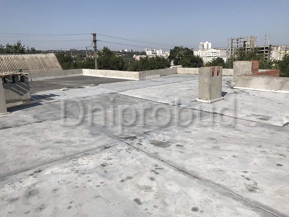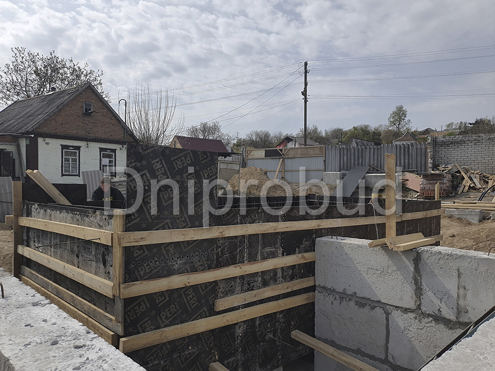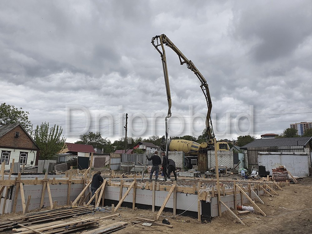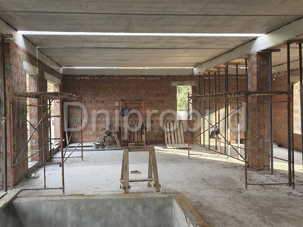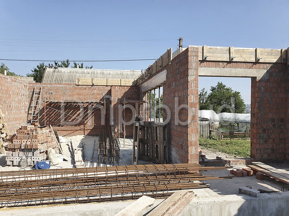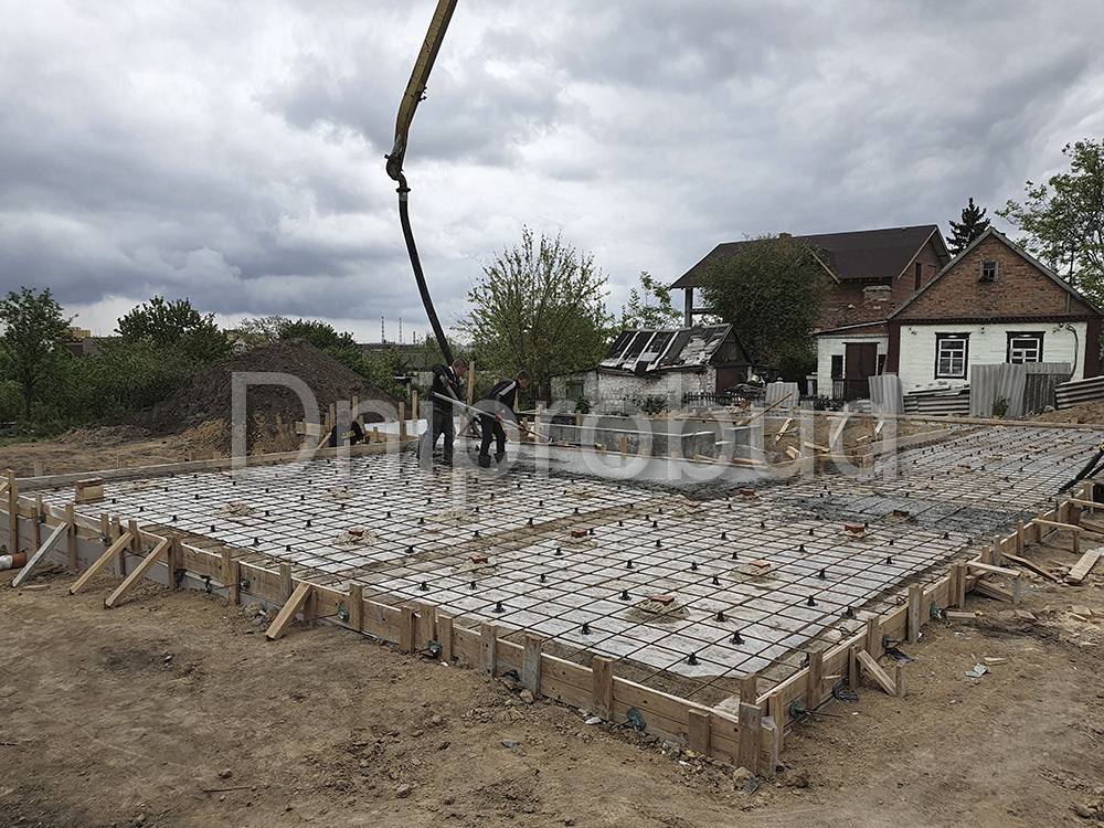 Строительство большого одноэтажного дома с плоской кровлей на правом берегу г. Днепр по индивидуально разработанному проекту DB 9.