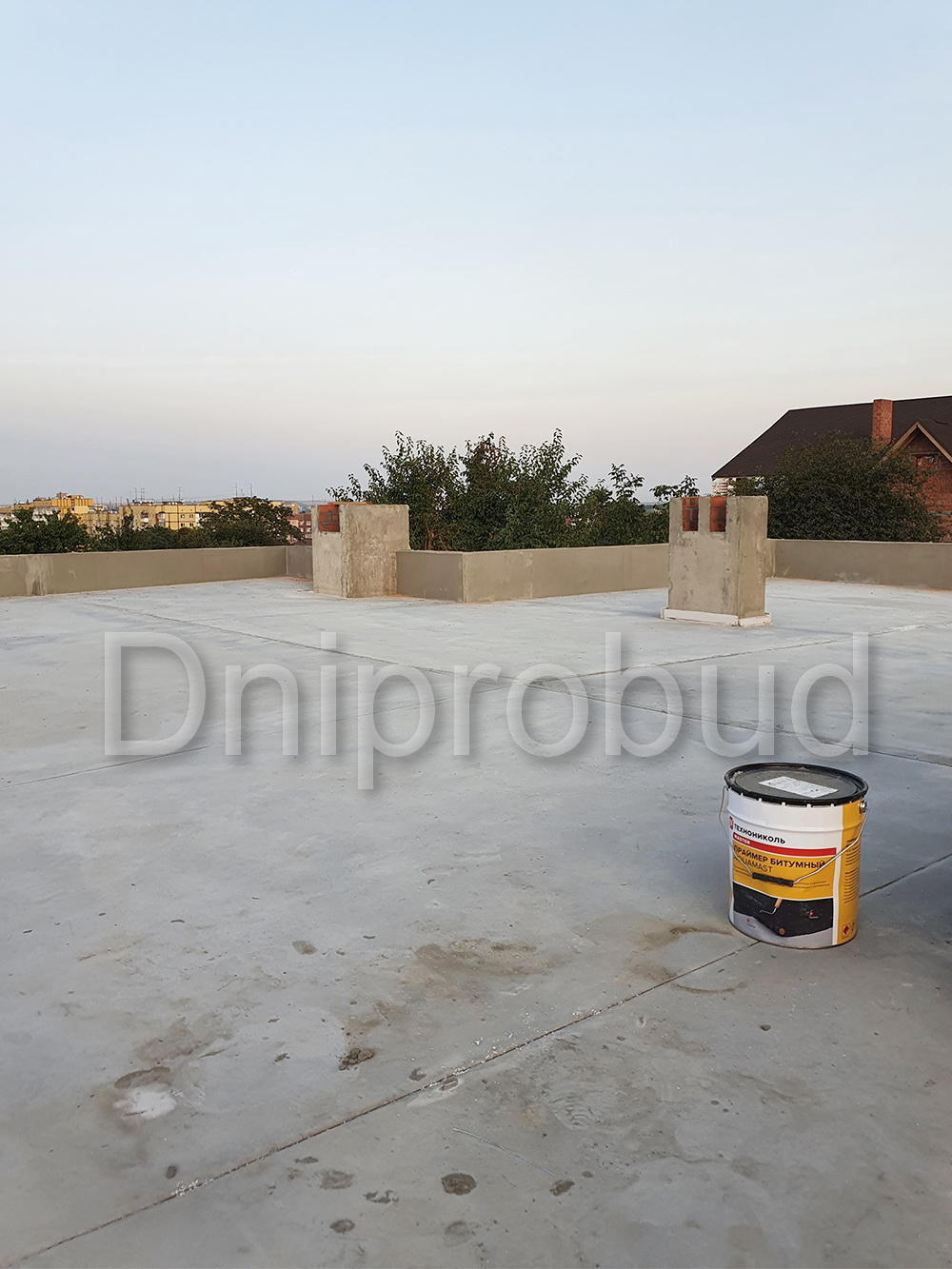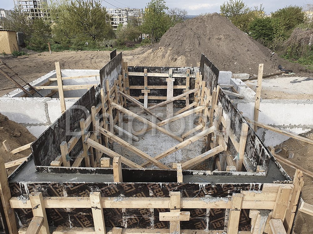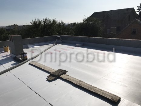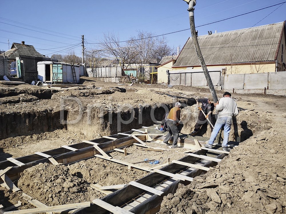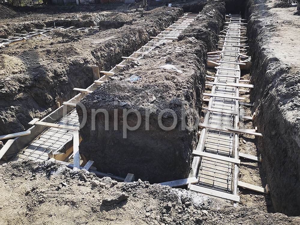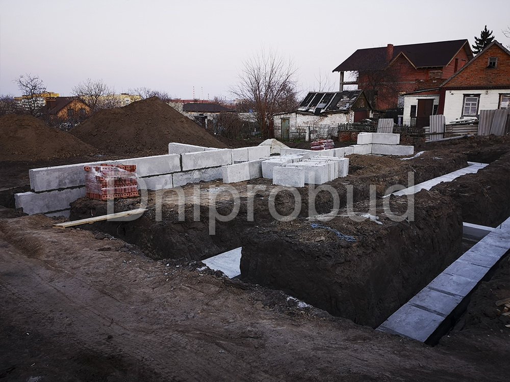 Строительство большого одноэтажного дома с плоской кровлей на правом берегу г. Днепр по индивидуально разработанному проекту DB 9.