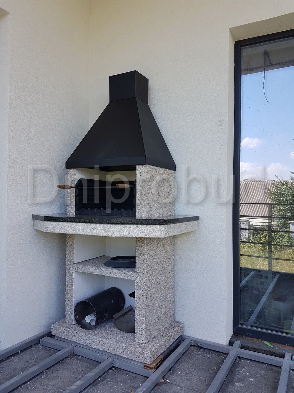 - Магистральный газопровод среднего давления проходил по участку надземным путем, что сделало невозможным беспрерывное строительство коттеджа. Поскольку перенос газовой трубы со всеми согласованиями занял почти год, специалистами компании «Дніпробуд» сначала был возведен нулевой, а также половина первого и второго этажей. Строительство всего коттеджа было завершено уже после переноса газовой магистрали.