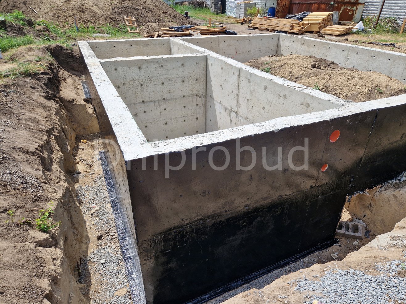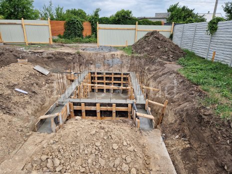 Основой здания является ленточный монолитный фундамент с подвальным помещением под частью дома.