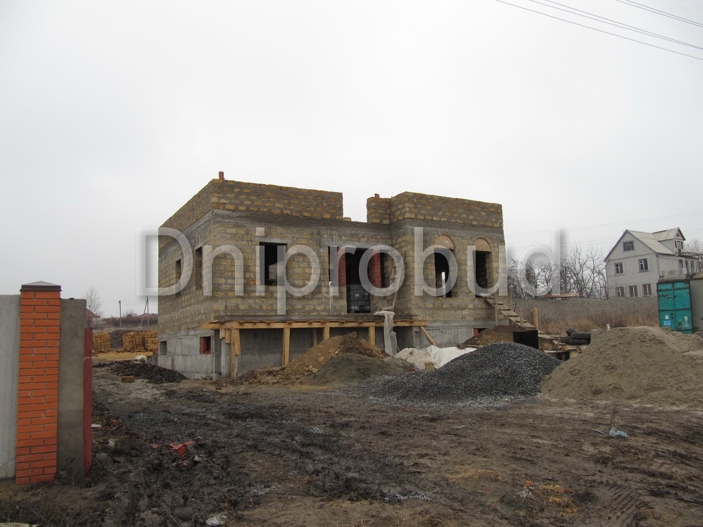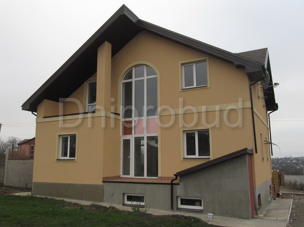 Большой дом с цокольным этажом в Днепре (с. Любимовка). Дом состоит из одного этажа и мансарды (минимальная высота стен 1,4-2,1 м), цокольный этаж под всем домом.