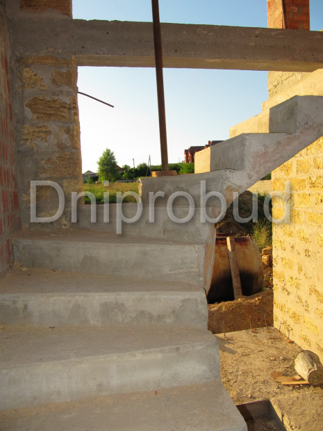 - Вход в дом организован как с фронтальной стороны, так и со стороны парковки. Витые бетонные лестницы. По два балкона на первом и втором этажах. С балкона второго этажа открывается вид на реку Днепр.