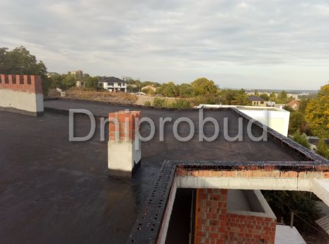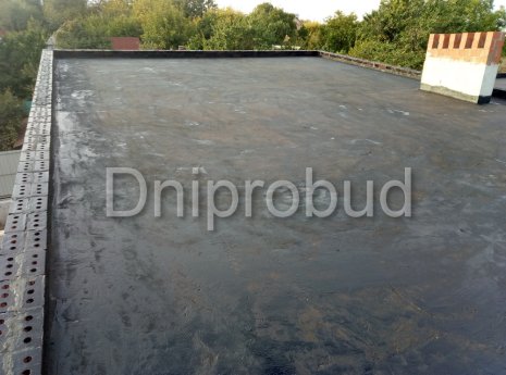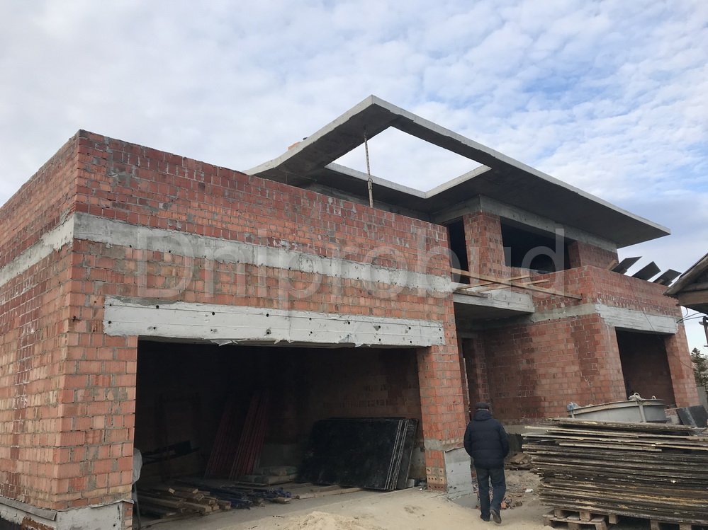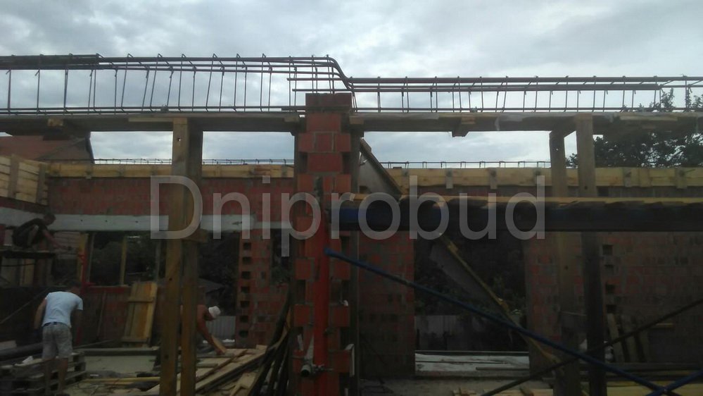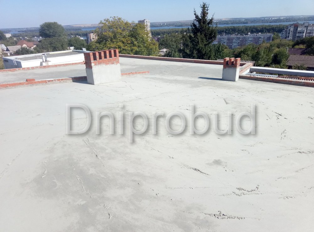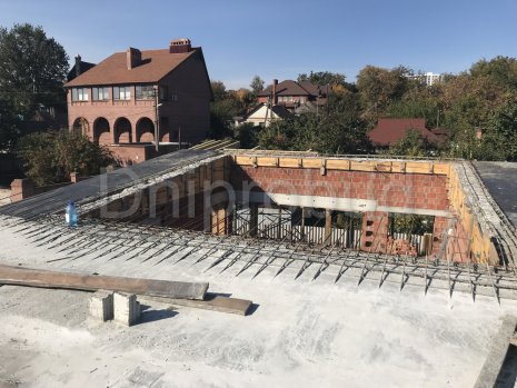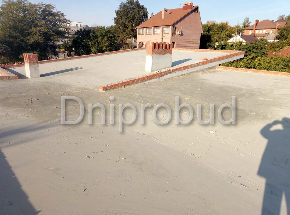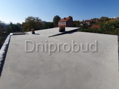 Конструкцией кровли объекта является монолитная железобетонная плита с углом наклона от 2 до 7 градусов. В связи с большими свесами кровли относительно опорных стен, расчетная толщина перекрытия составила 220 мм.