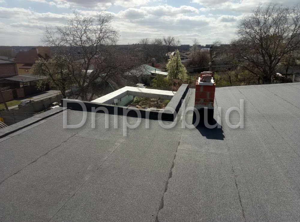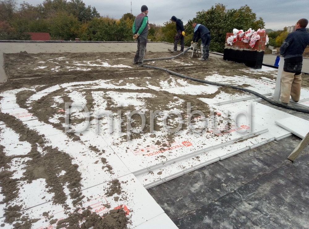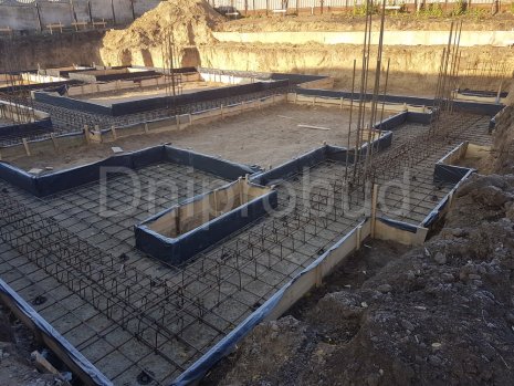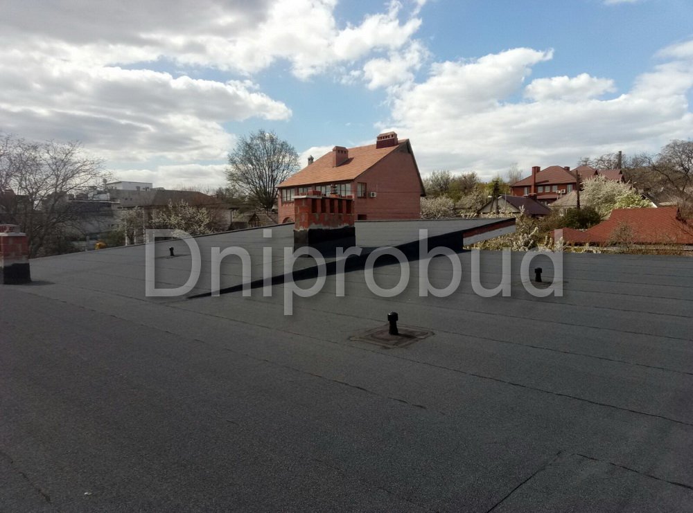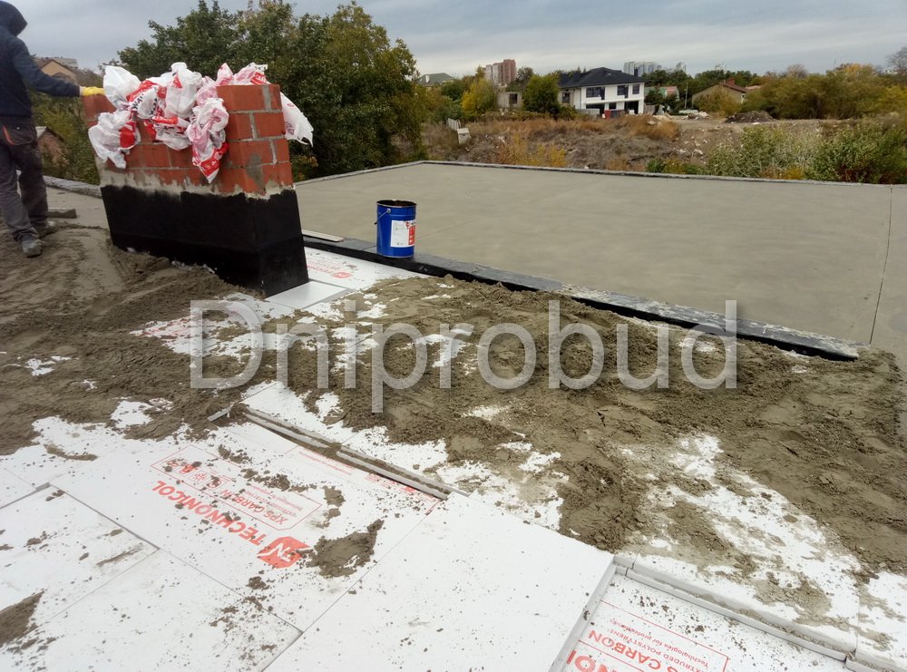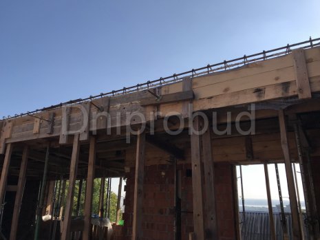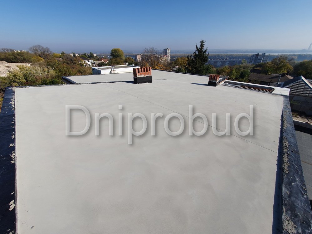 Конструкцией кровли объекта является монолитная железобетонная плита с углом наклона от 2 до 7 градусов. В связи с большими свесами кровли относительно опорных стен, расчетная толщина перекрытия составила 220 мм.