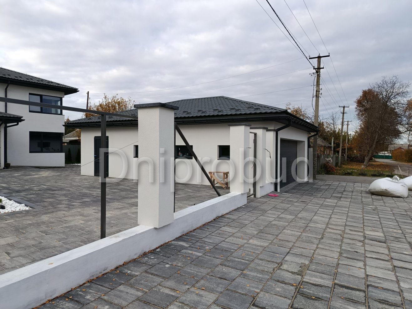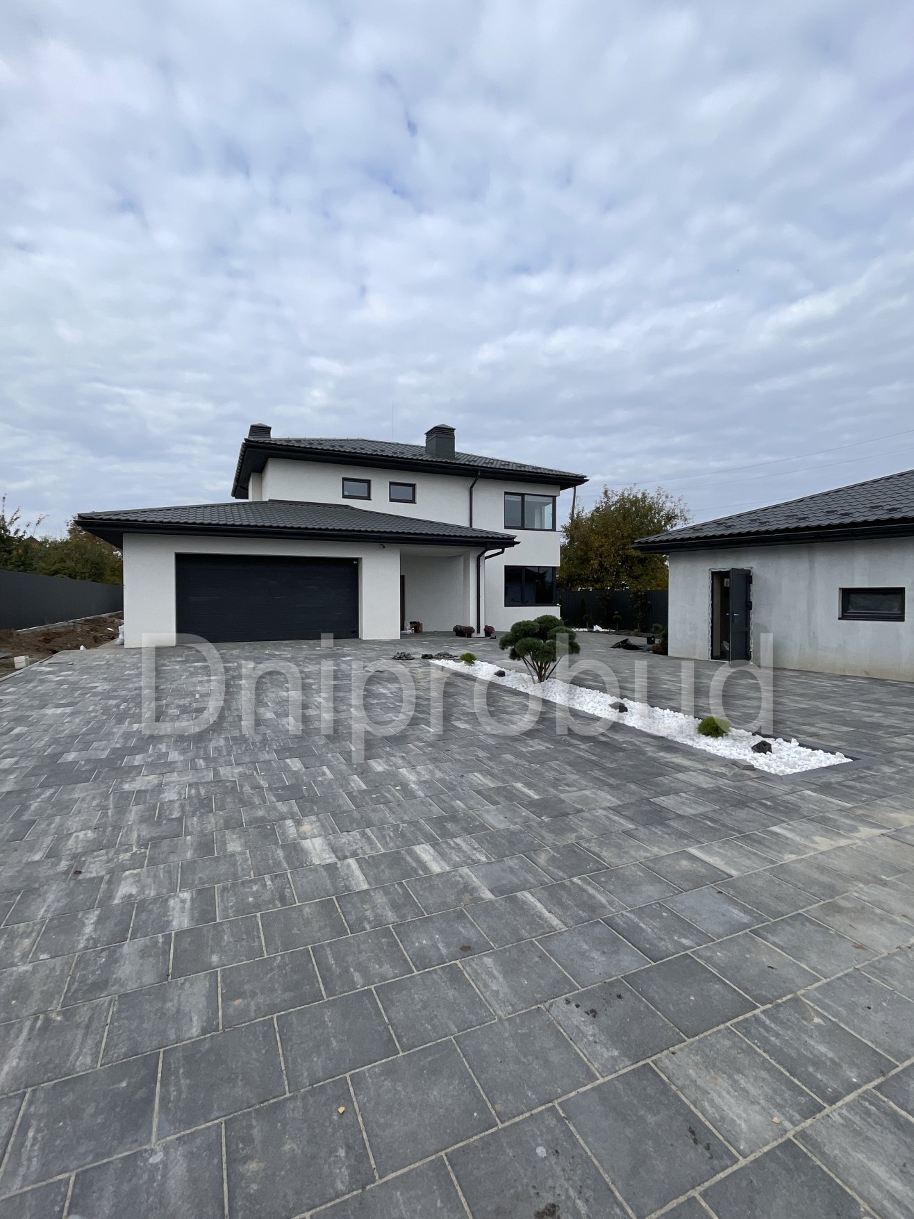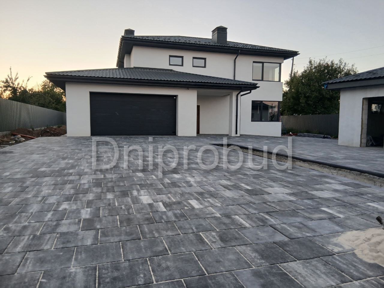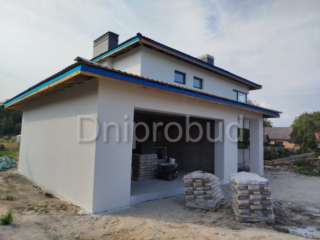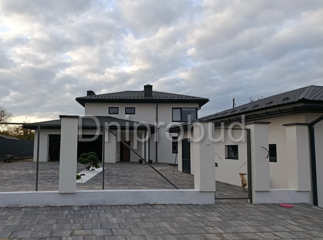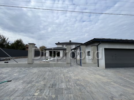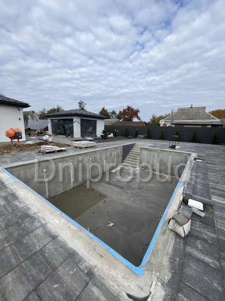 На участке также построены хозяйственное здание, беседка, бассейн, гараж на две машины.