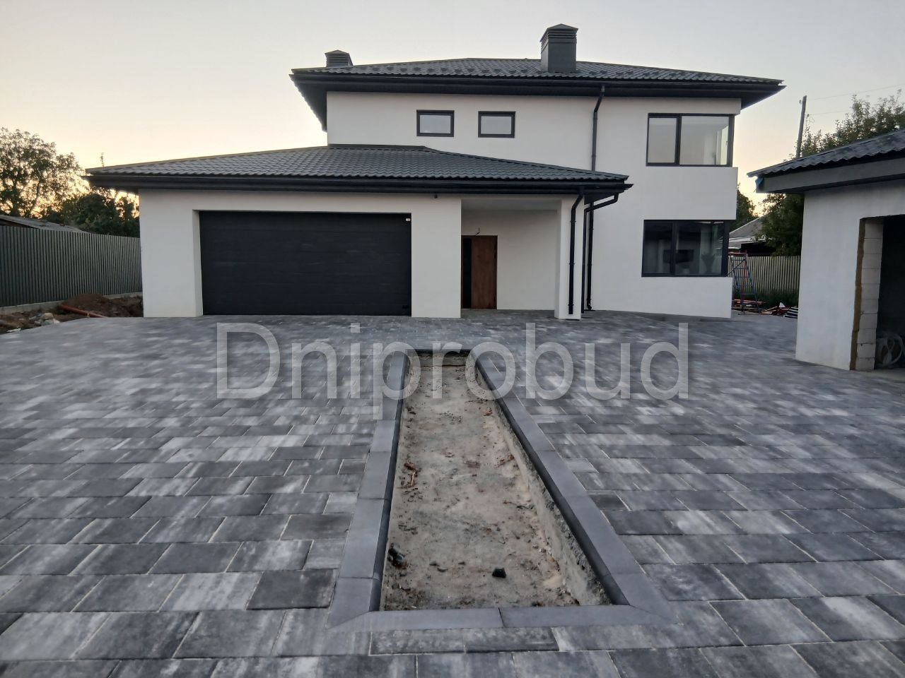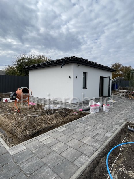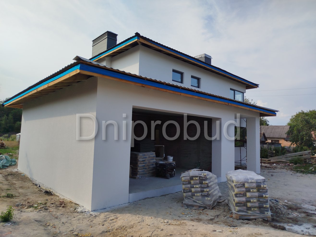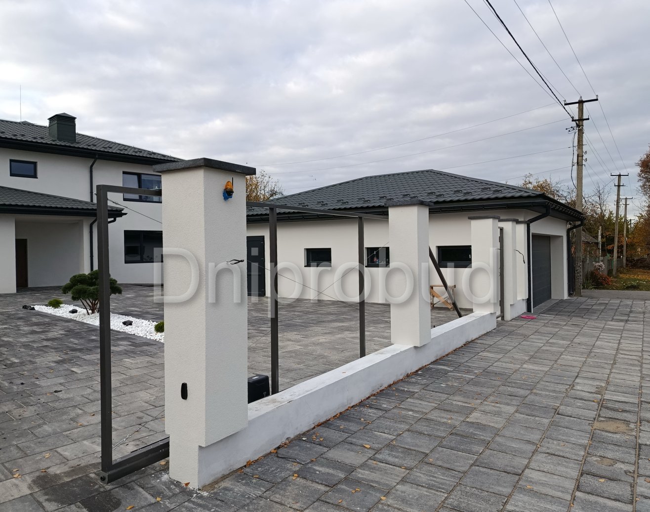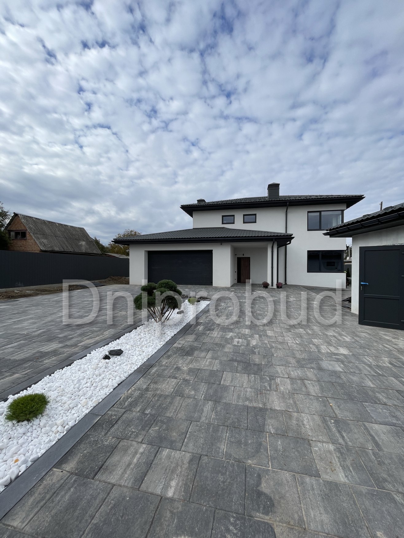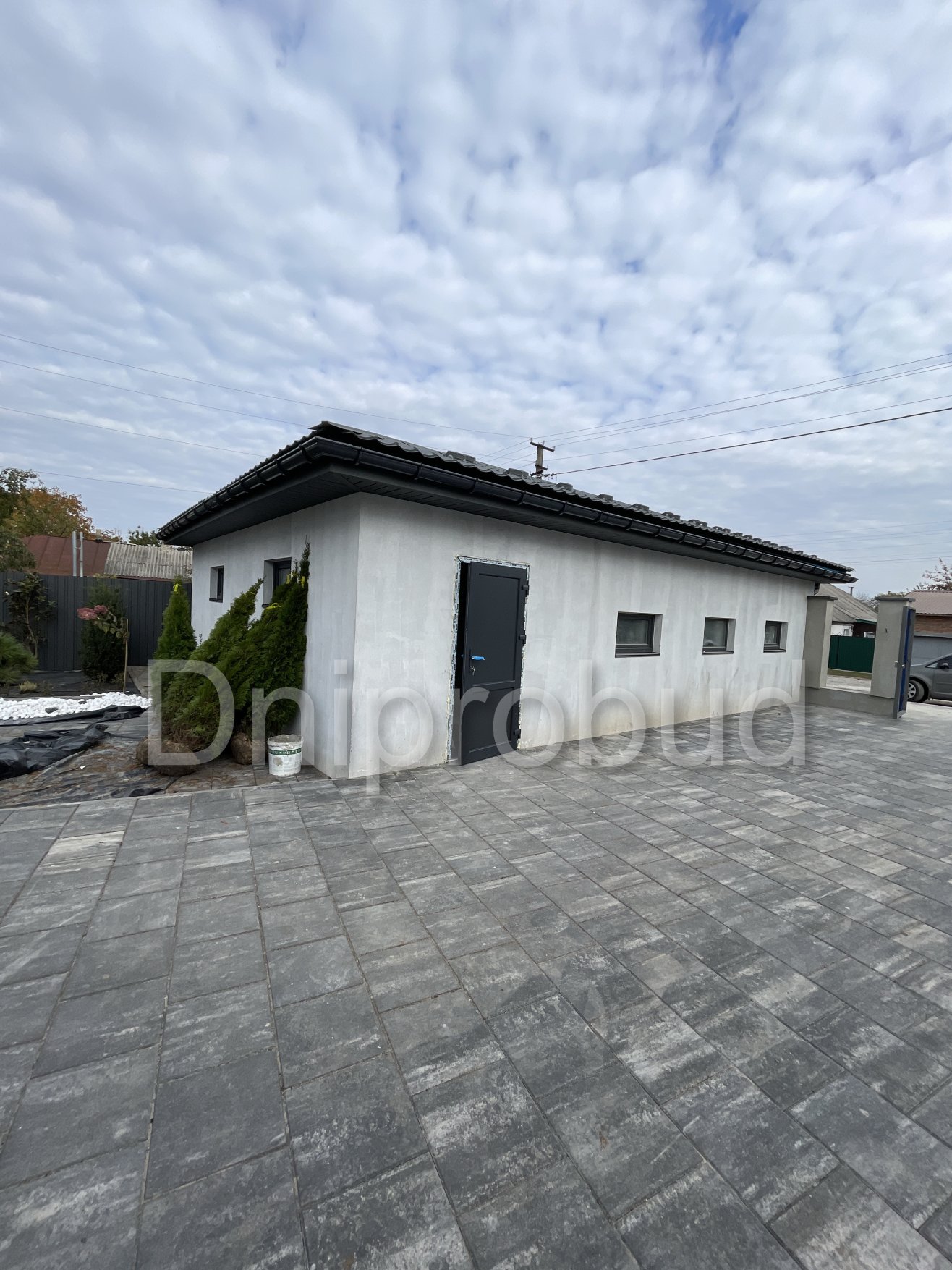 На участке также построены хозяйственное здание, беседка, бассейн, гараж на две машины.