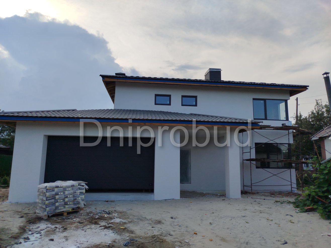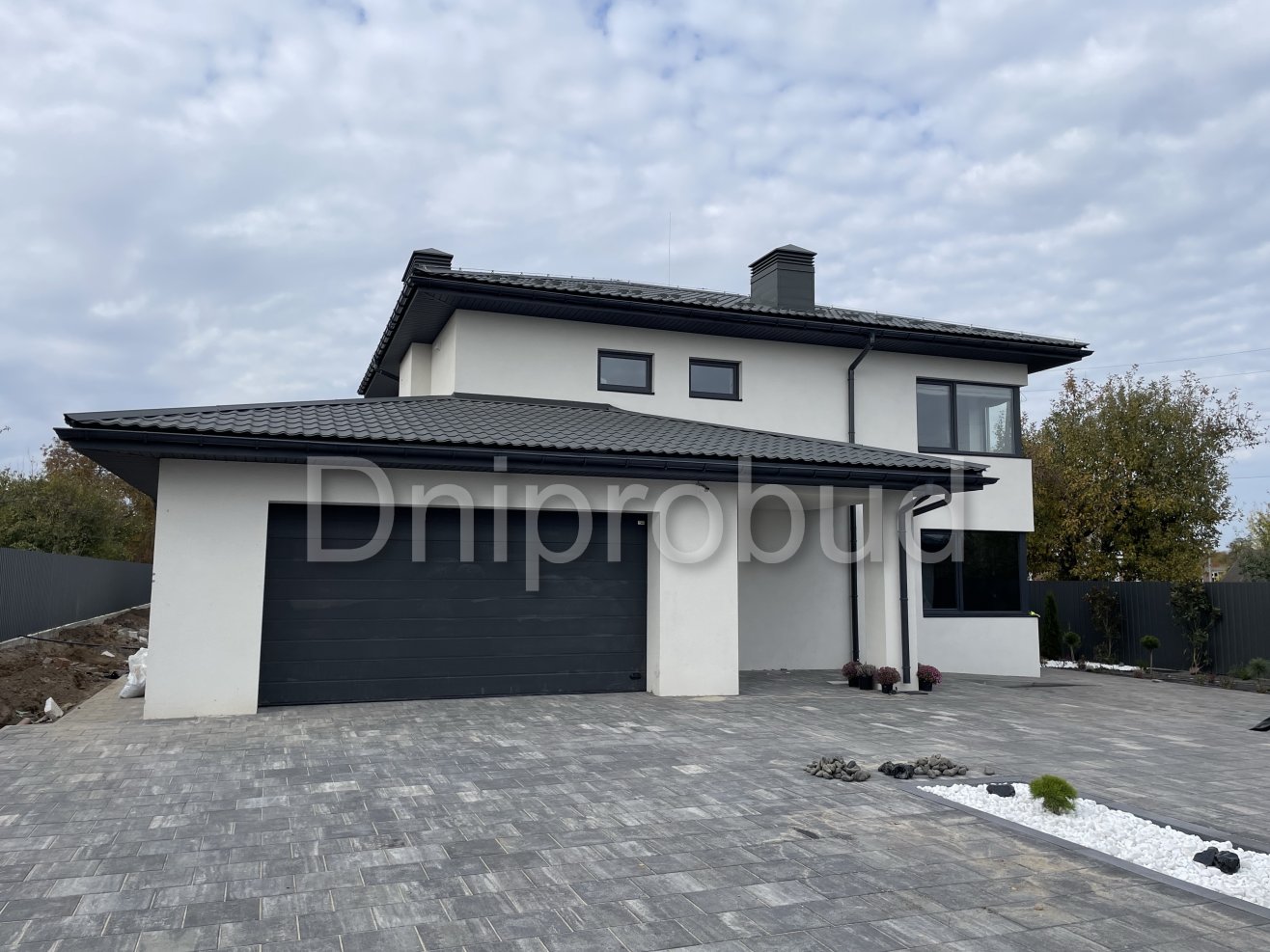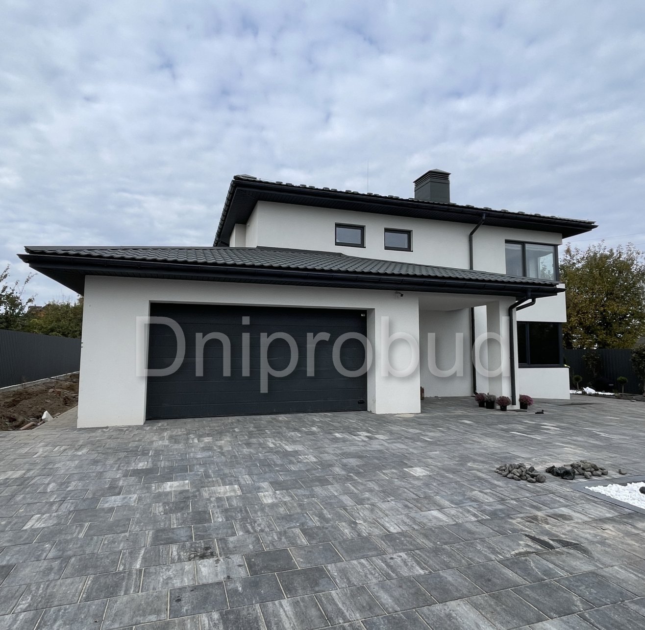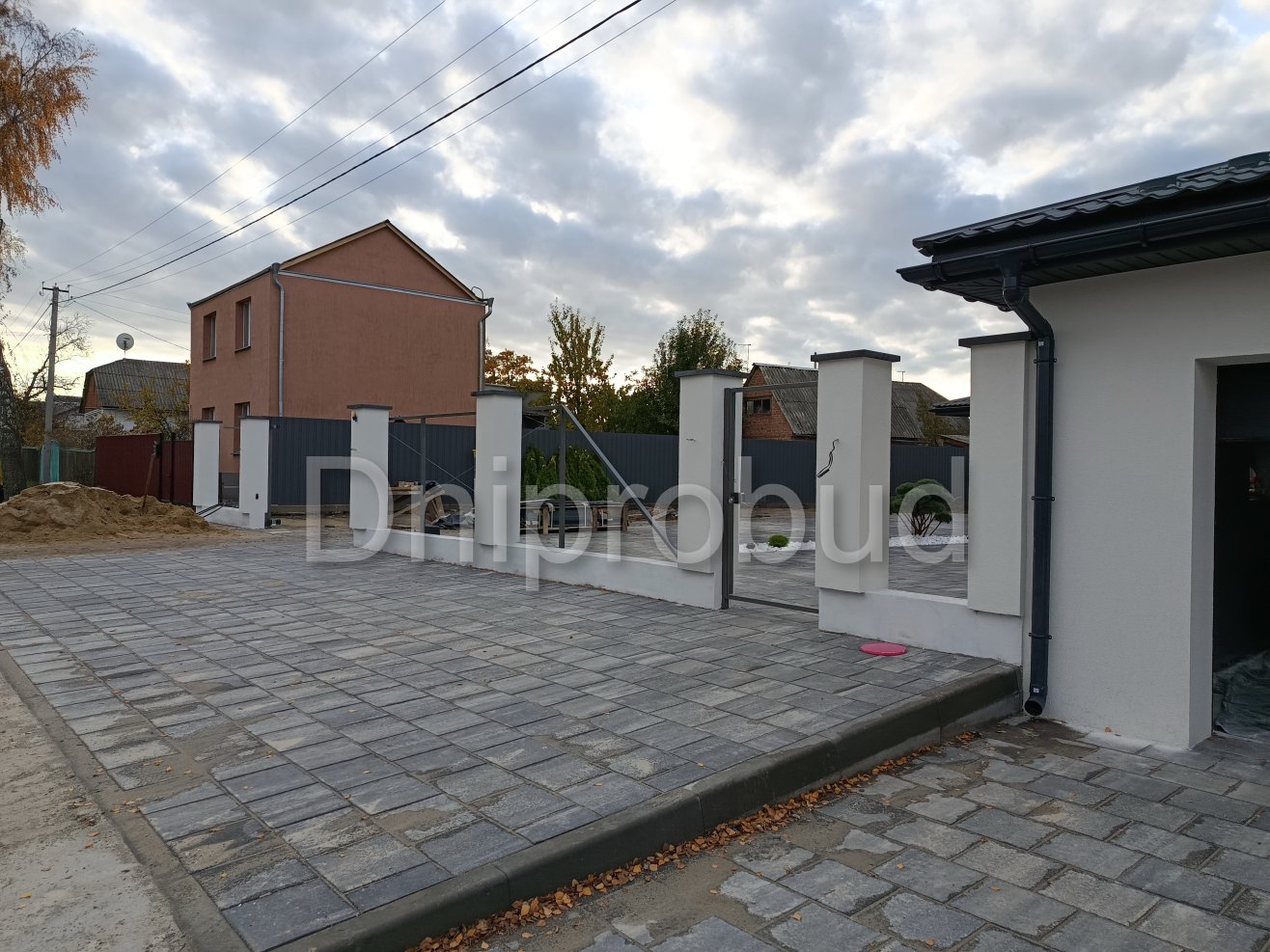 На участке также построены хозяйственное здание, беседка, бассейн, гараж на две машины.