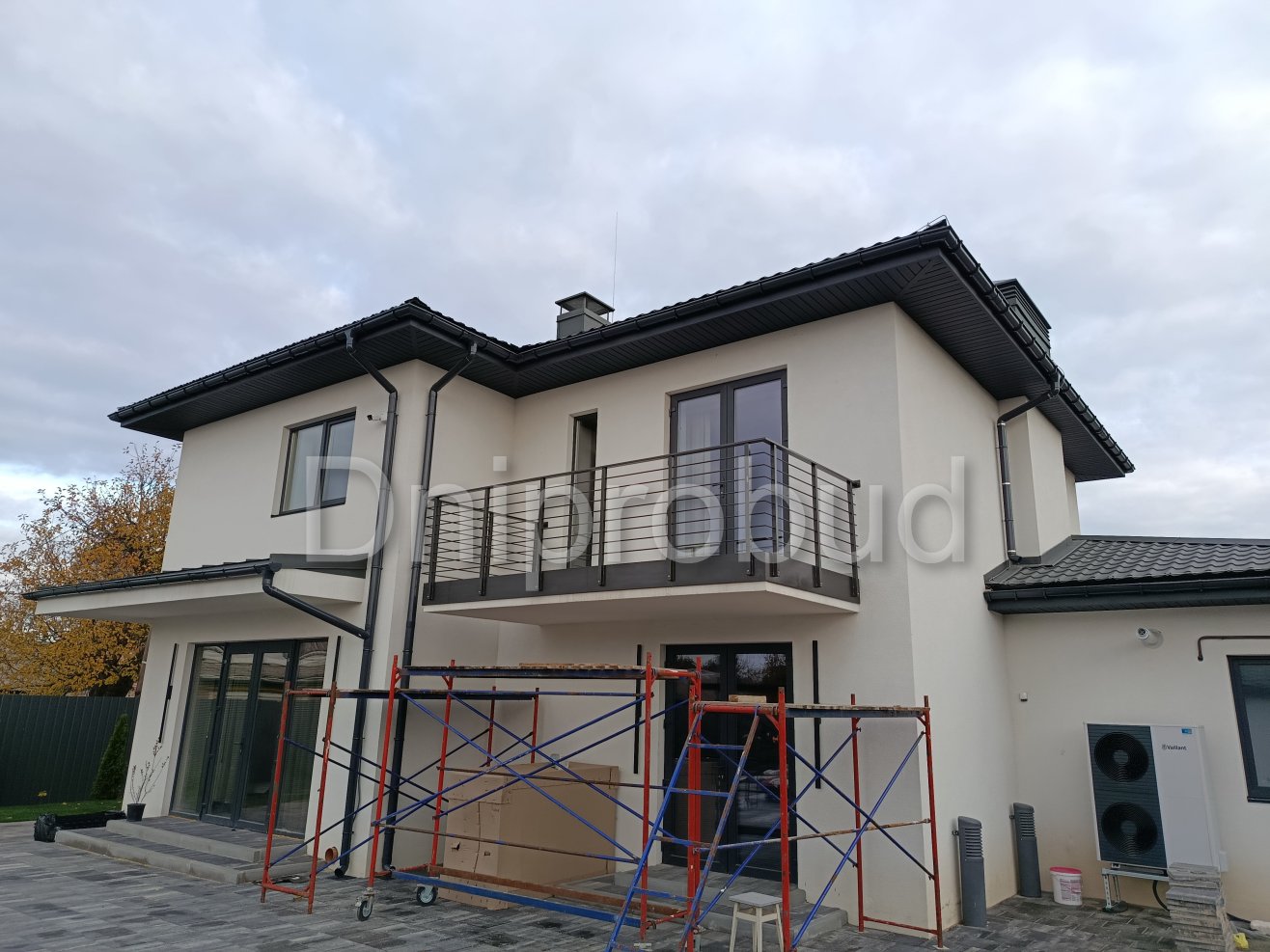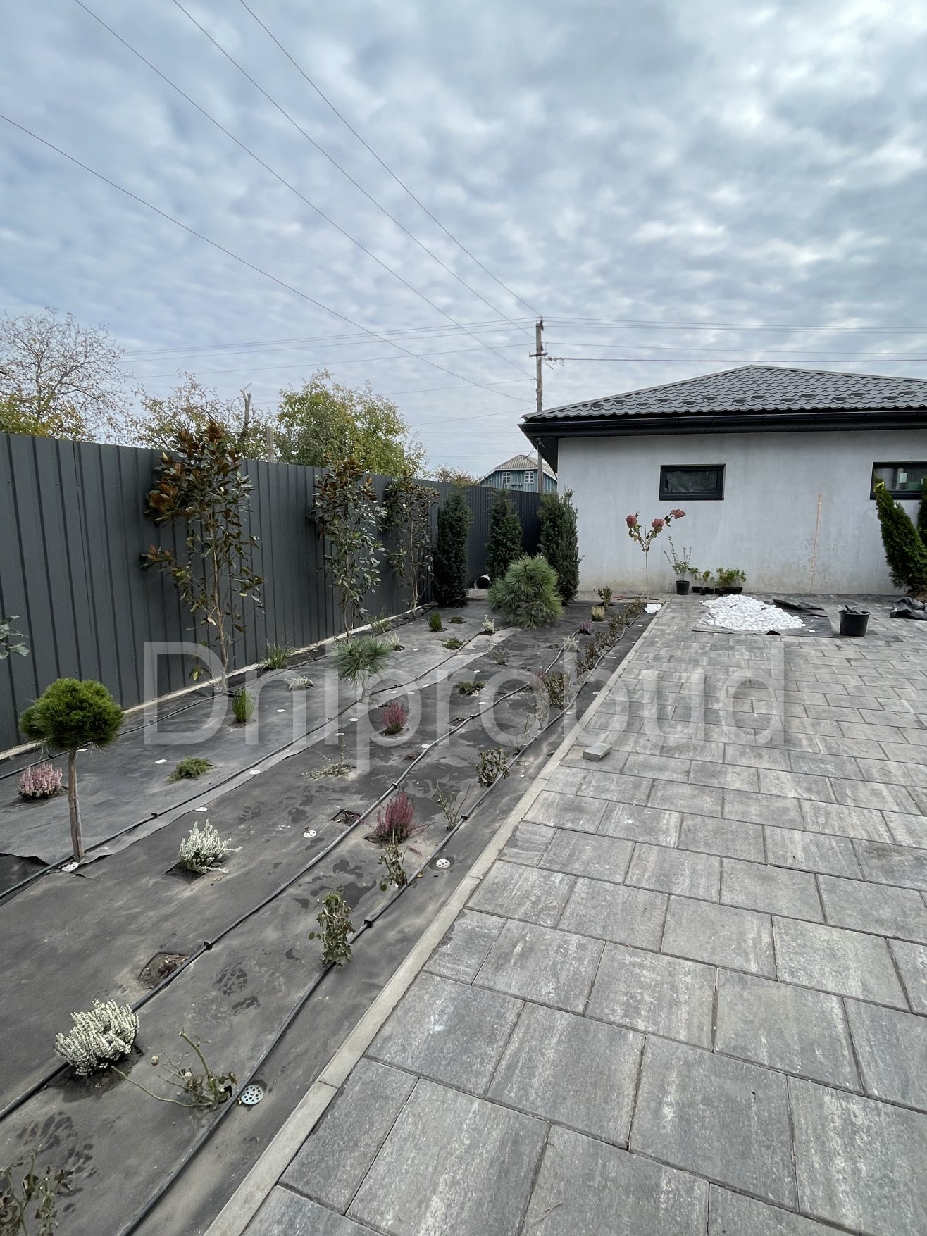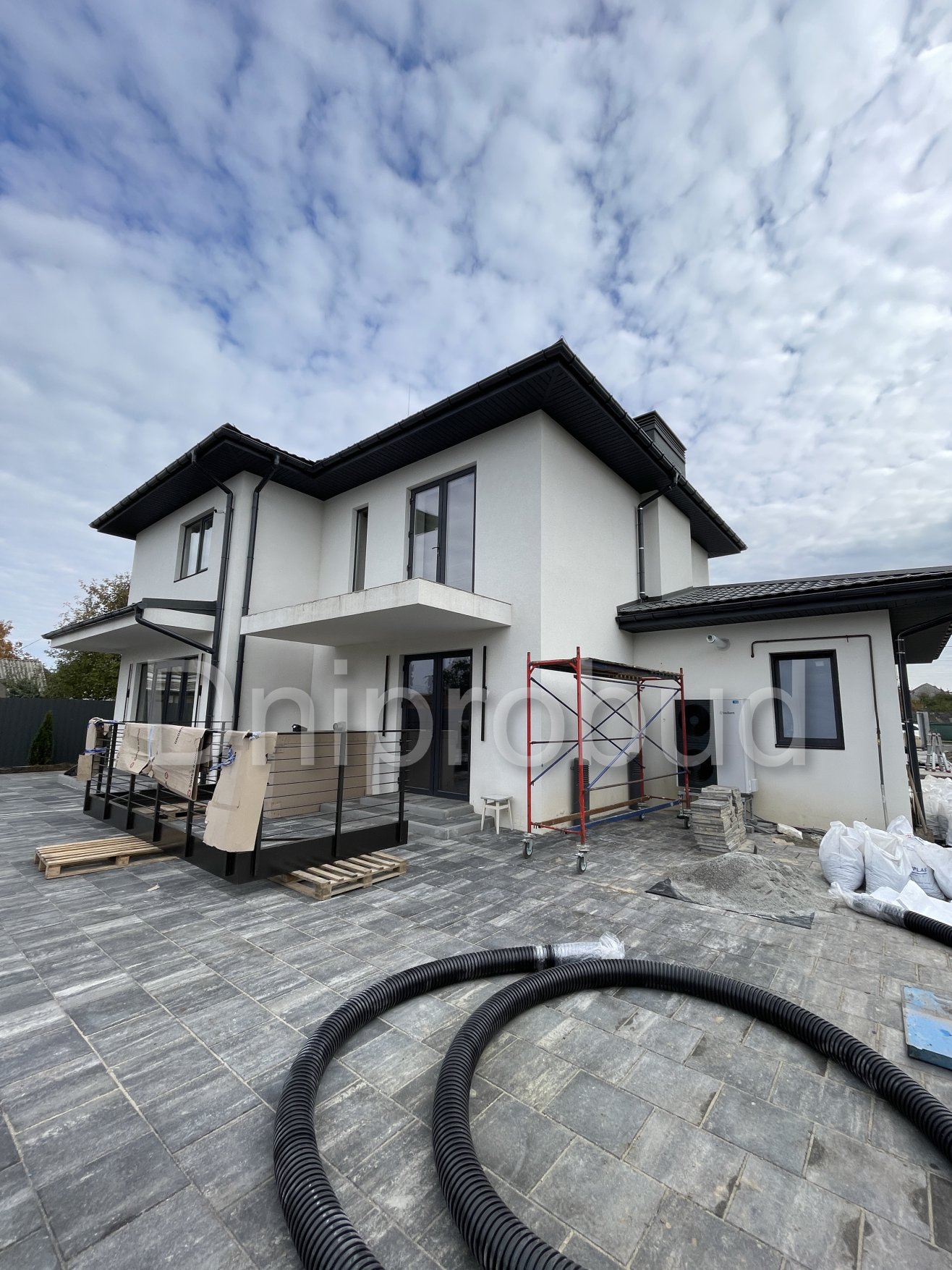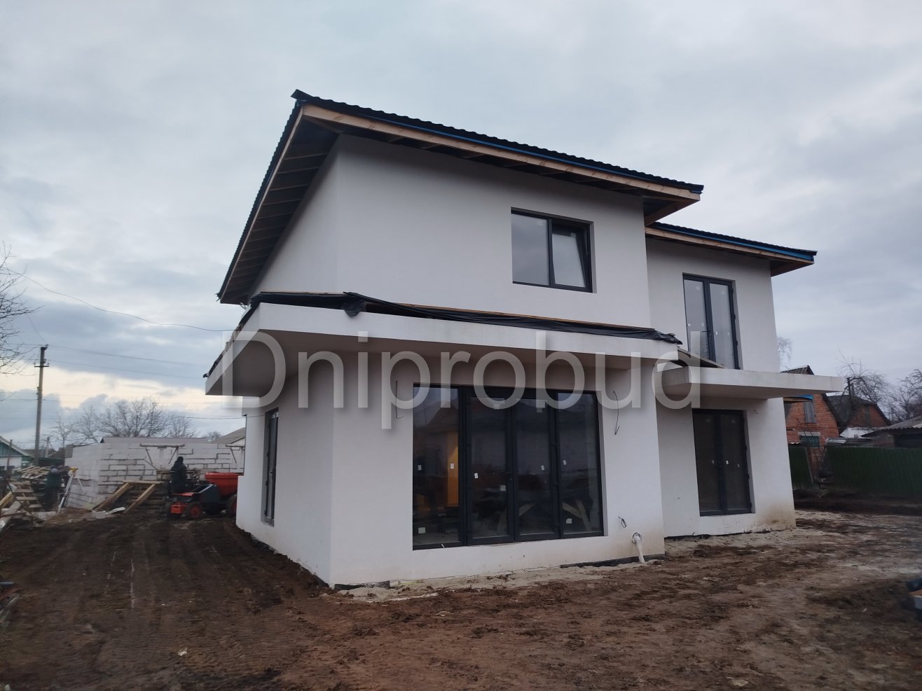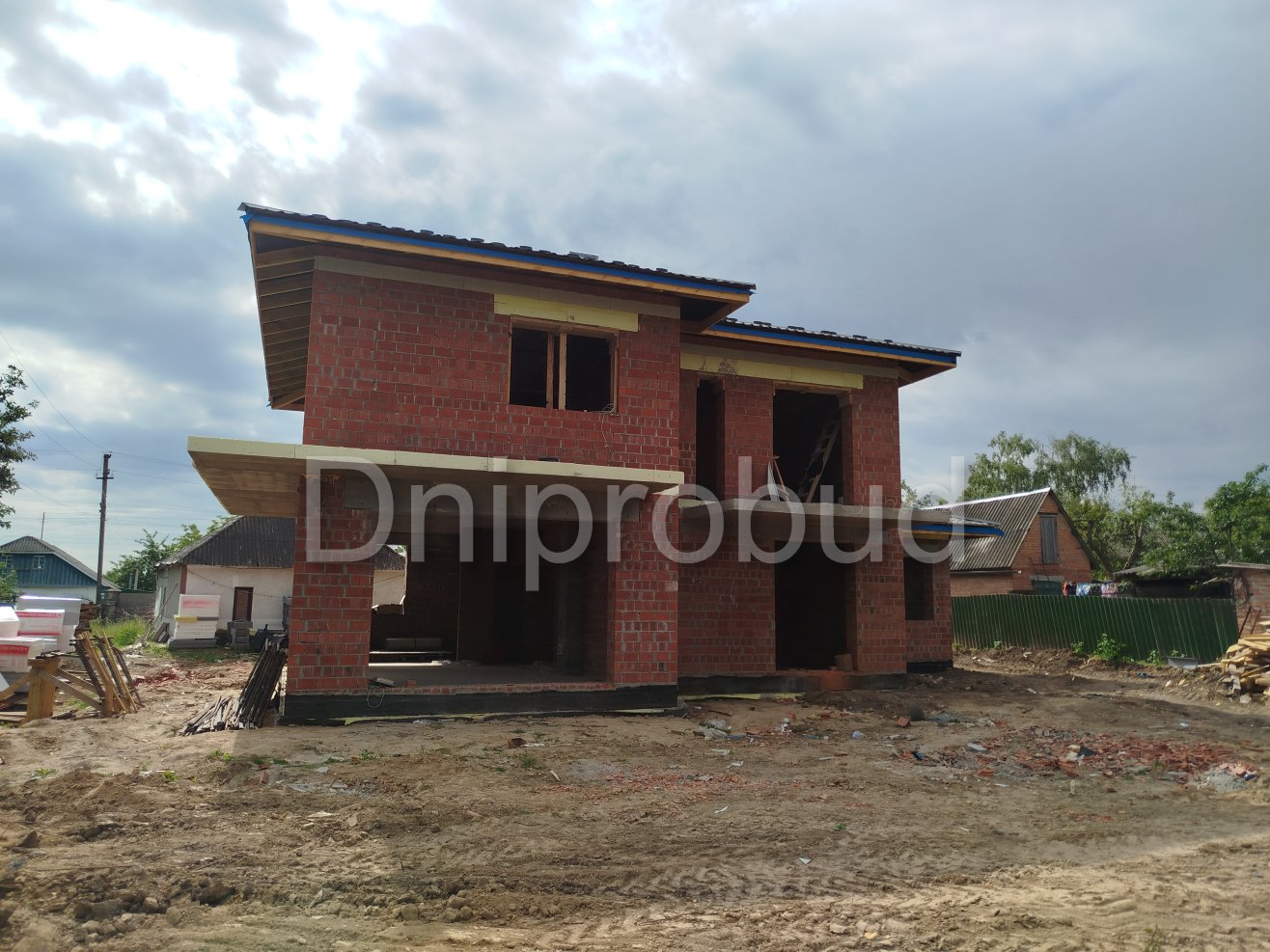 На участке также построены хозяйственное здание, беседка, бассейн, гараж на две машины.
