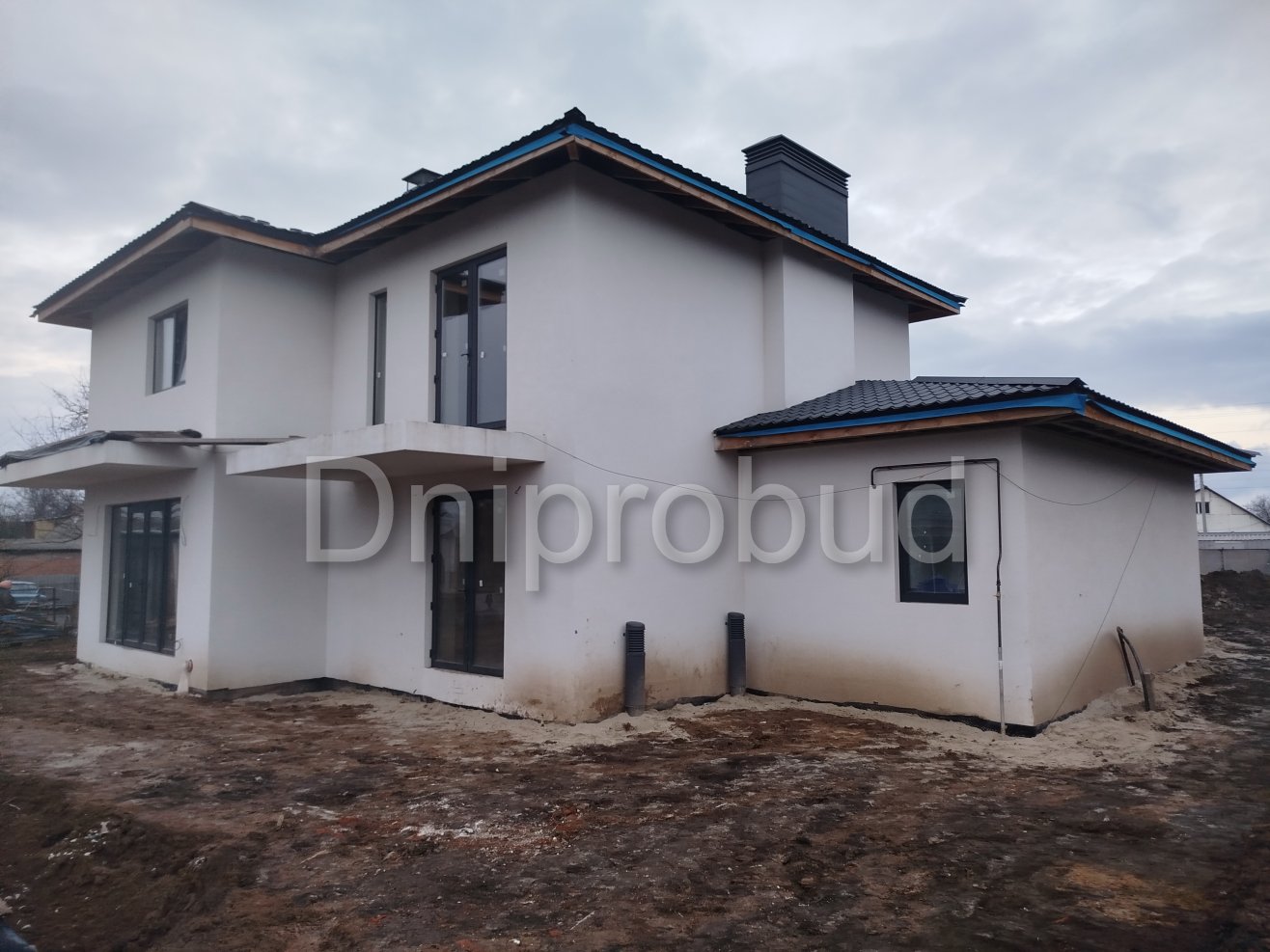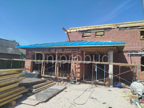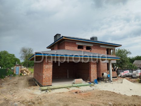 Типовой проект с изменениями. Изменения касались добавлением подвала под домом и возможности дополнительного отопления комнат теплым воздухом от камина.