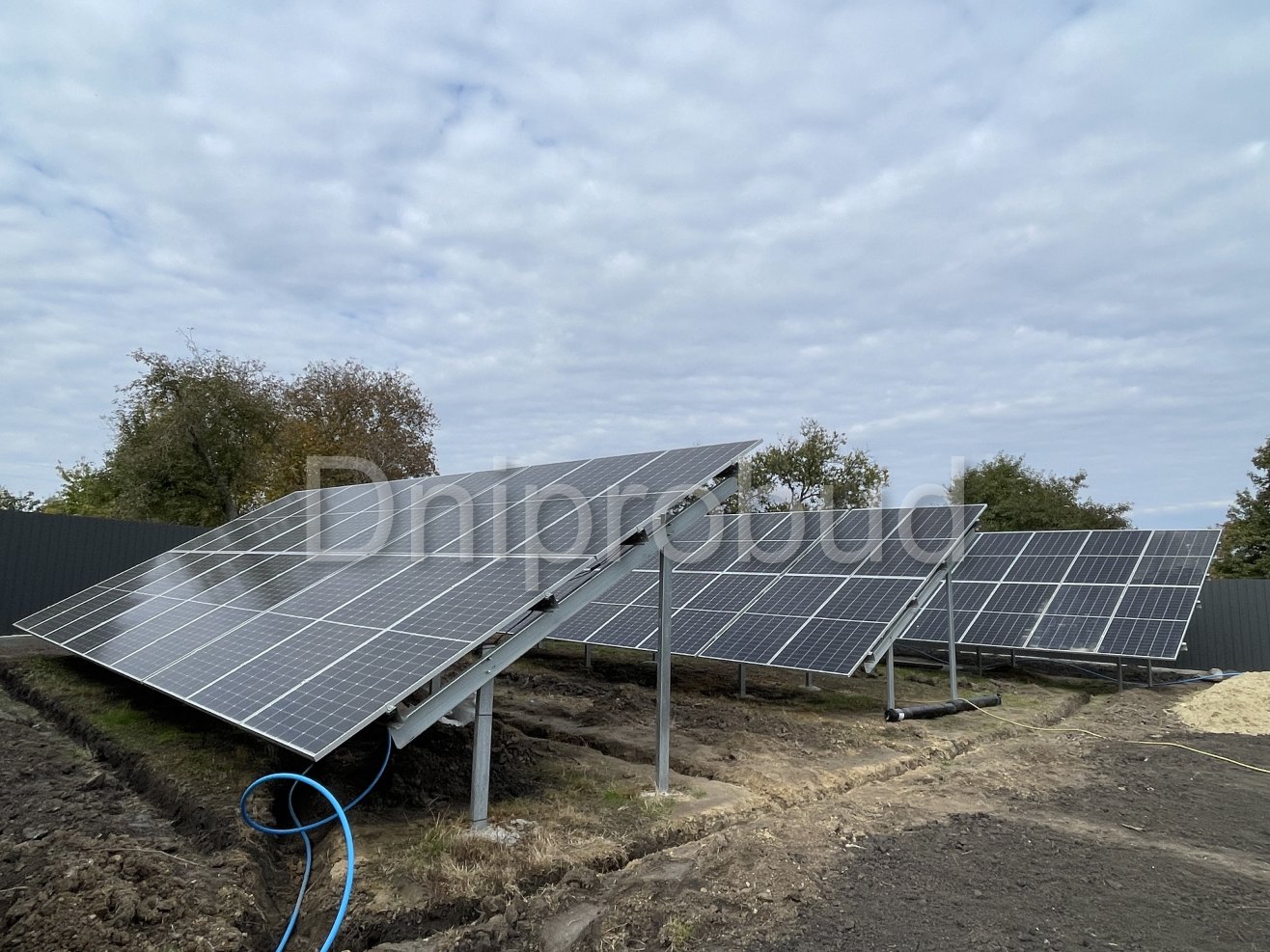 Для обеспечения бесперебойной поставки энергии на участке смонтировано поле солнечных батарей на металлическом каркасе с железобетонным фундаментом. Оборудование водоподготовки и скважина для всего комплекса построек смонтирована в техническом приямке бассейна.
