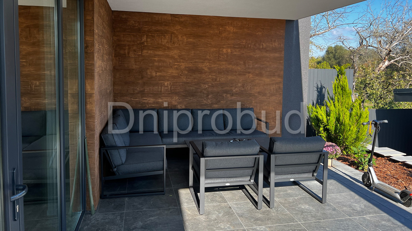 На крыше гаража обустроена терраса с выходом из спальни.