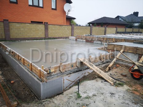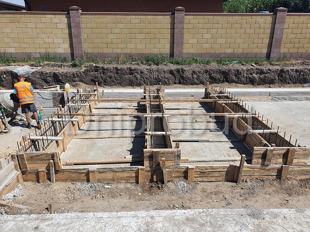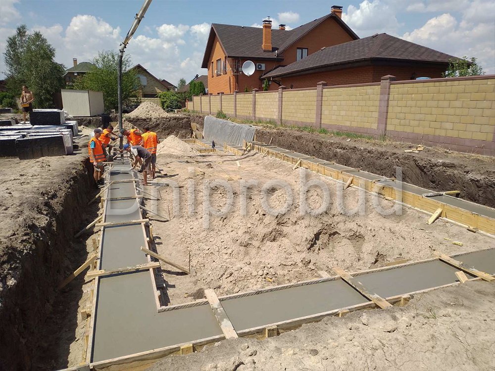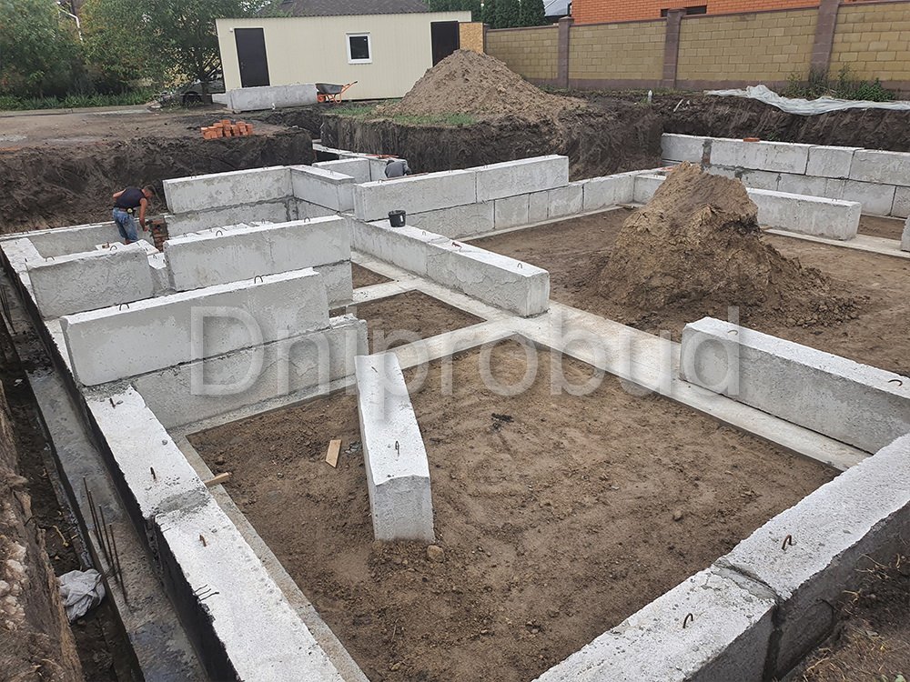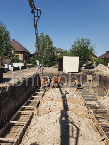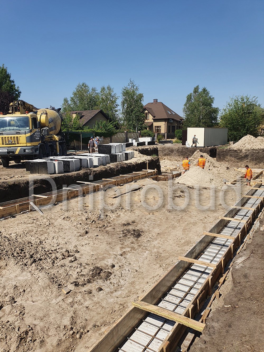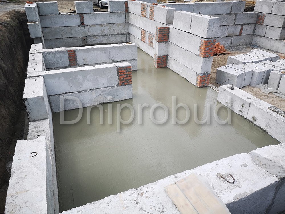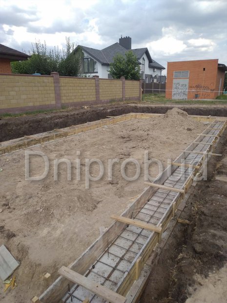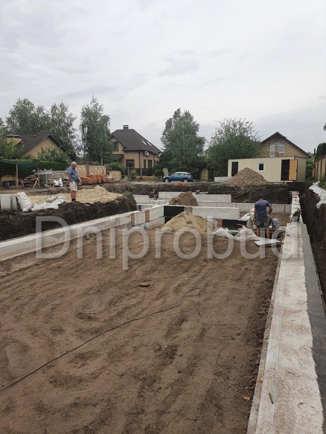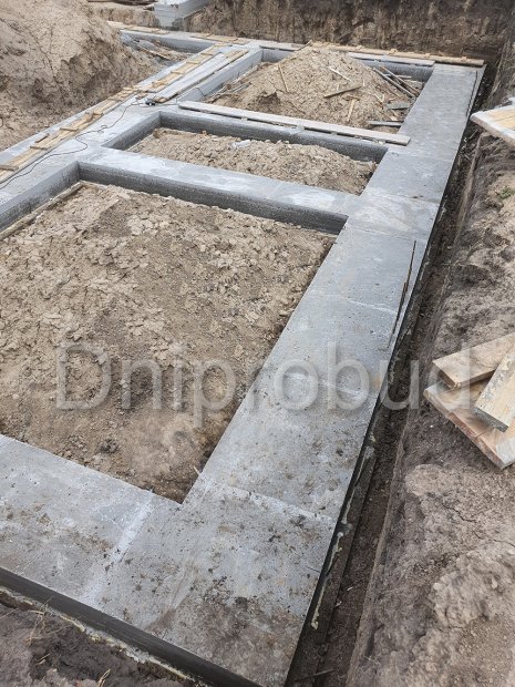 - Устройство цокольного этажа. Участок строительства имеет перепад по высоте всего 0,3м, в пятне застройки дома, поэтому устройство цокольного этажа предполагает большое количество земляных работ. В цокольном этаже дома располагается просторная мастерская, а также технические помещения: топочная, постирочная, помещение для хранения инвентаря. Вход в цокольный этаж осуществляется двумя способами: 1-й - по внутренней лестнице, 2-й - отдельный вход с улицы предусмотренный с левой стороны дома.