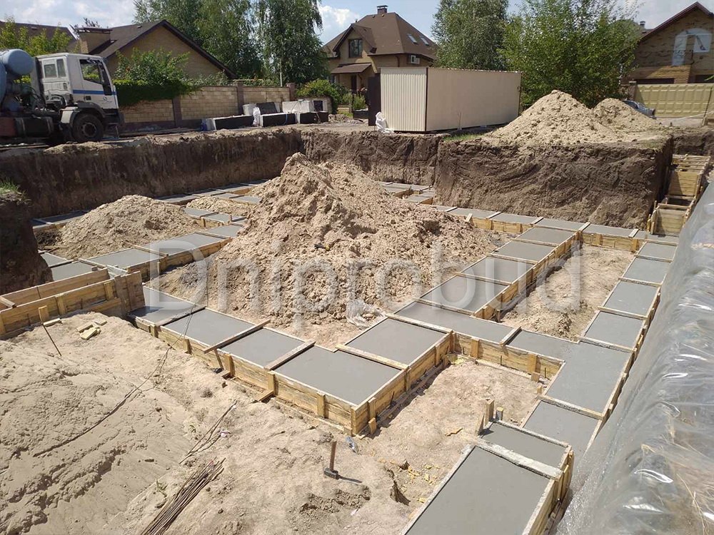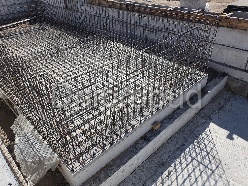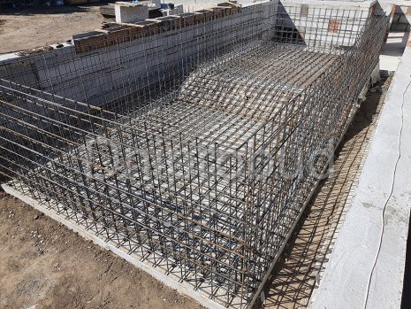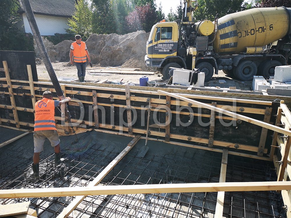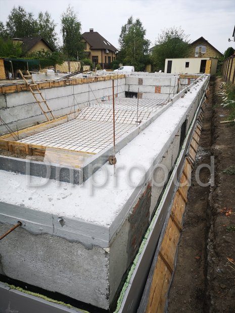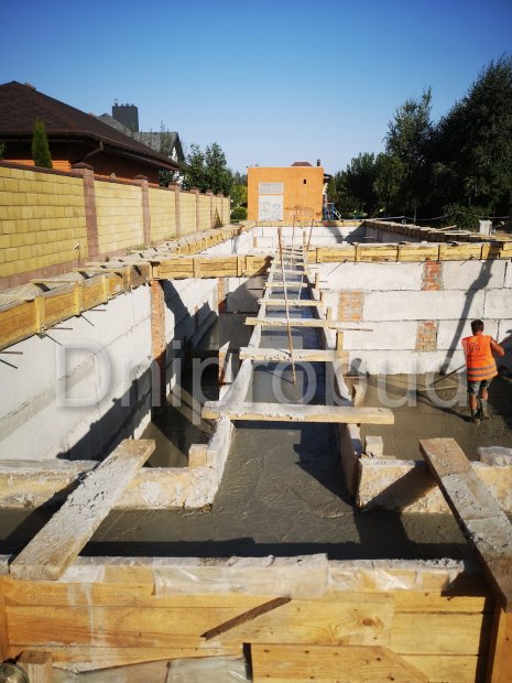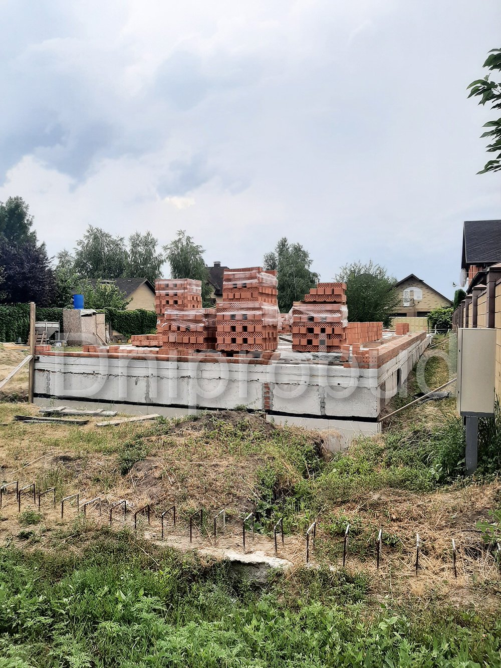 Фундамент объекта сборно-монолитный: монолитная железобетонная подушка+4 ряда блоков в цокольной части дома, 3 ряда блоков в зоне гостиной, 2 ряда блоков в зоне бассейна и 1 ряд блоков в зоне гаража. Материал стен - керамический блок. Кровля - натуральная черепица. Наружная отделка стен выполнена в трех материалах - декоративная штукатурка+клинкерный кирпич+алюминиевые композитные панели, отделка цоколя - гранитные плиты.