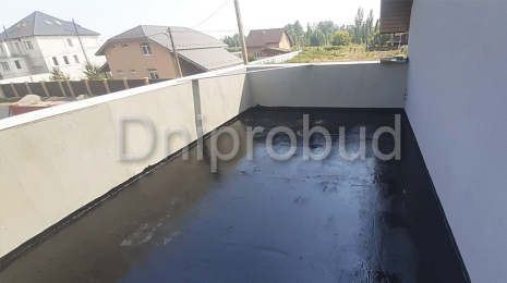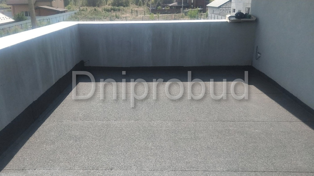 Крыша над гаражом монолитная, плоская. Утепление крыши гаража выполнено пенополистиролом. Стяжка с уклоном из жесткого цементно-песчаного раствора для отвода дождевой воды.