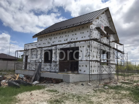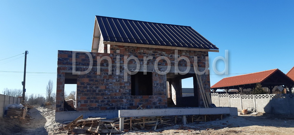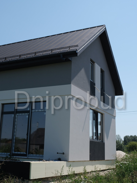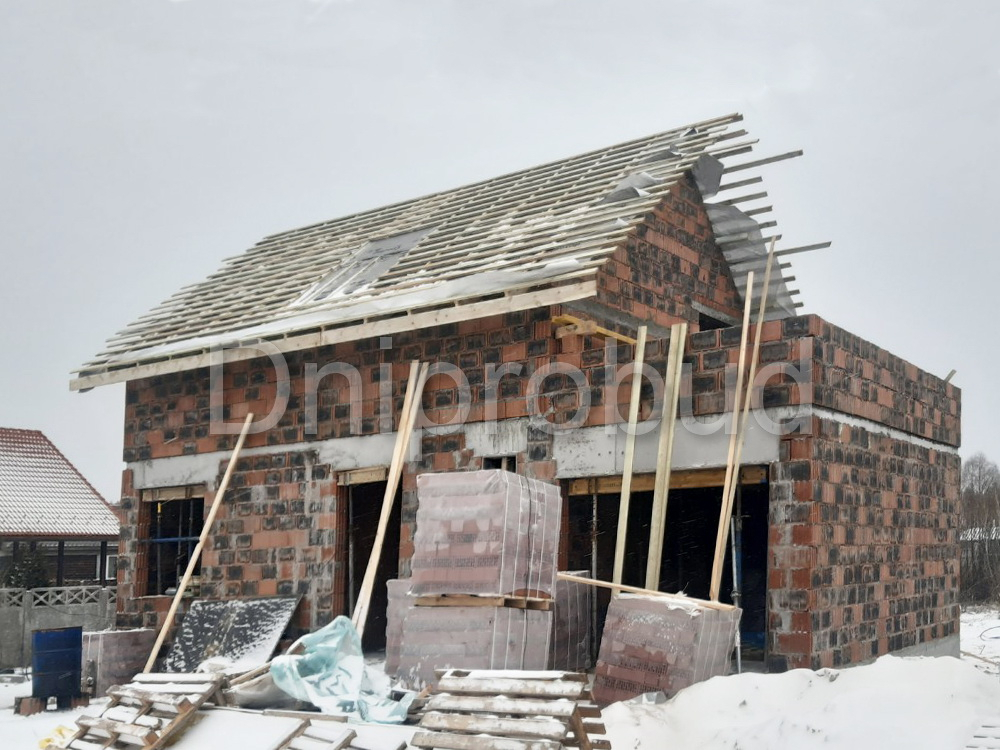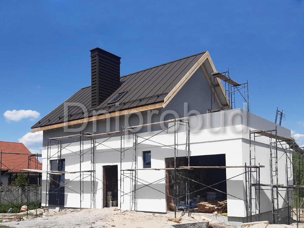 Небольшой дом мансардного типа в с. Глебовка, Киевской области по типовому проекту от компании Z500 U217 с гаражом на одну машину.