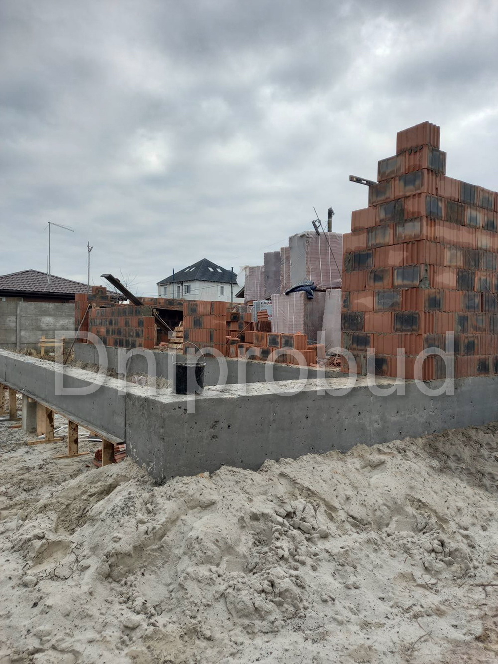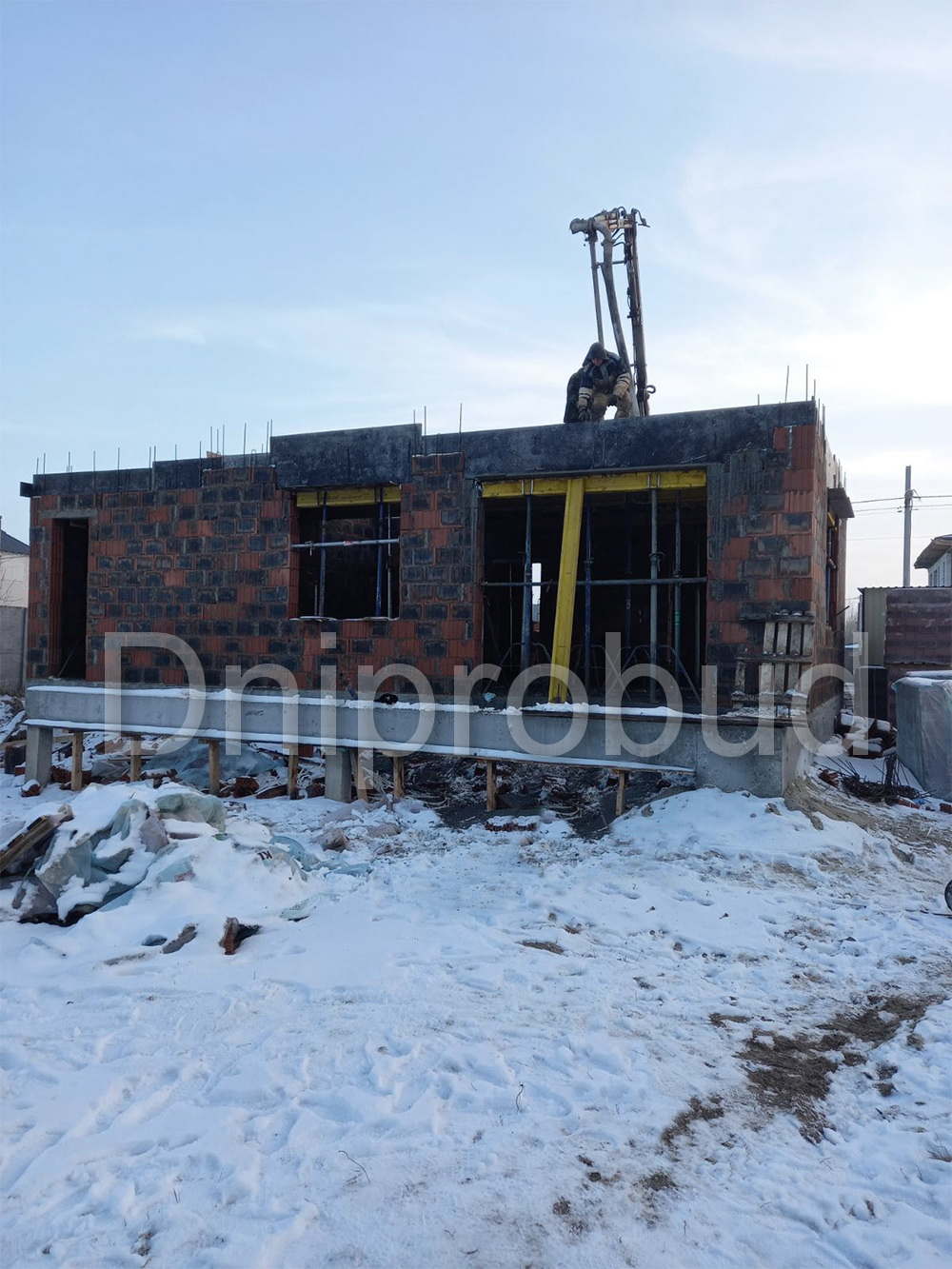 В связи с близким расположением грунтовых вод, конструктивная схема здания была рассчитана на фундаменте из забивных свай, ростверк высотой 60 см. Несущие стены дома из керамических блоков толщиной 25 см. Монолитное межэтажное перекрытие. Крыша дома двускатная. Утепление крыши дома осуществлялось с использованием минеральной ваты толщиной 200 мм.