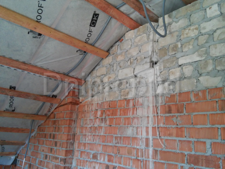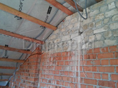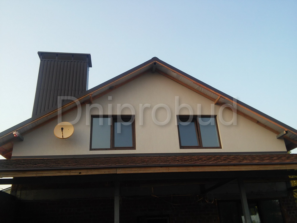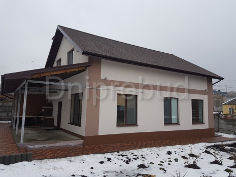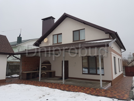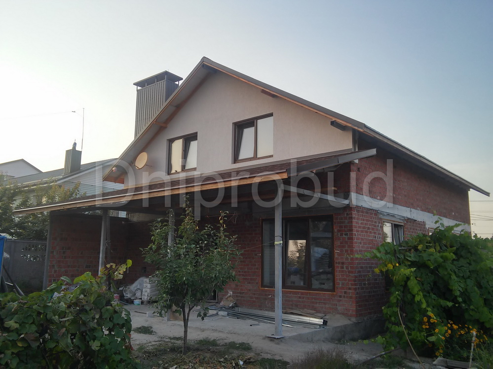 Строительство классического коттеджа мансардного типа в Днепропетровске . Площадь 170 м. кв. Большая терраса с барбекю. Кухня-столовая отделена от гостиной. Полная перестройка старого дома с усилением фундамента. 3 вида отопления: газ, электричество, твердое топливо. В 2016 году была построена отдельно стоящая баня.
