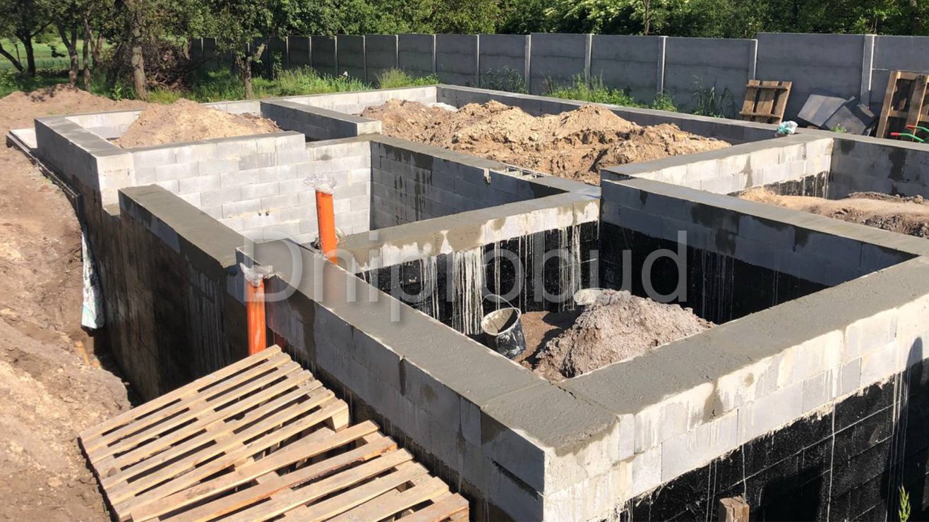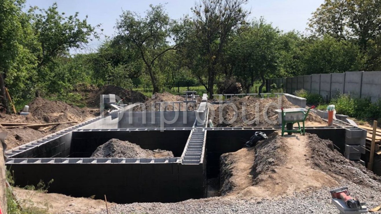 В селе Щербановка, Киевской области, стартовало строительство нового двухэтажного дома с подвалом общей площадью 131,45 м². Проект разработан индивидуально под потребности заказчика командой компании Dniprobud.