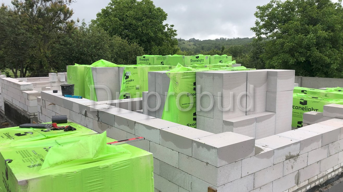 - Стены из газоблока Stonelight D500 толщиной 300 мм.