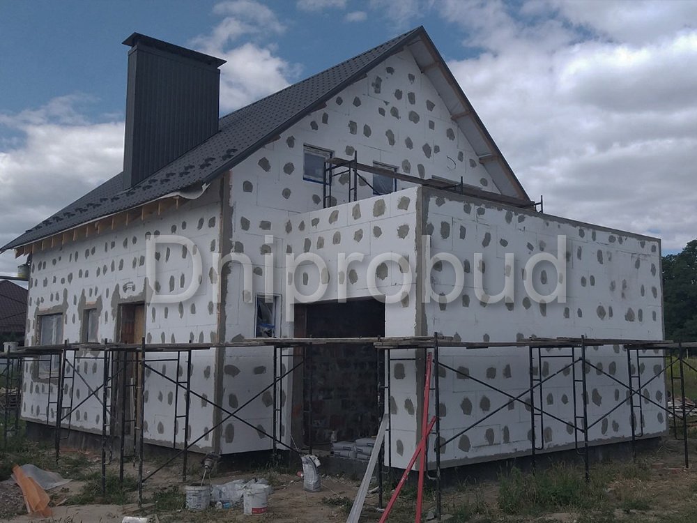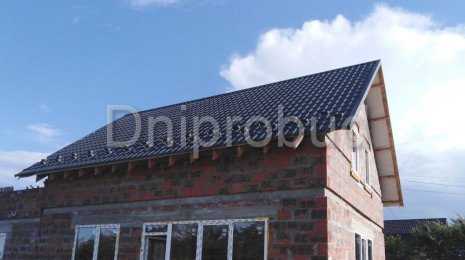 Небольшой мансардный дом с гаражом на одну машину в с. Гора, Киевской области.