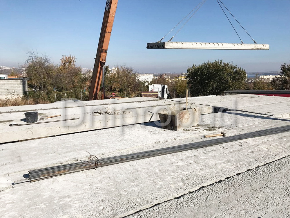 - По желанию заказчика деревянное перекрытие было заменено на перекрытие из пустотных плит.