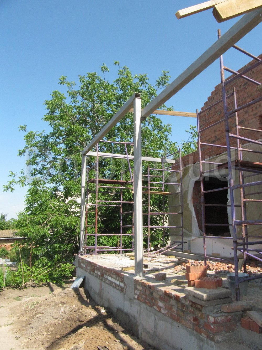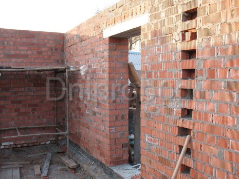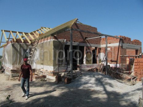 - Стены: 380 мм общестроительный глиняный кирпич. Утепление стен минеральной ватой 100 мм.