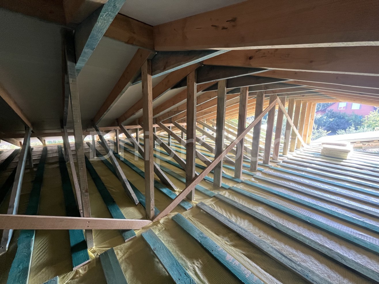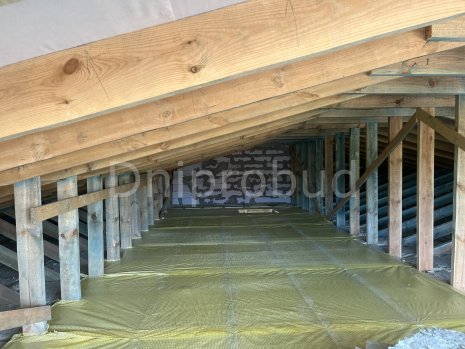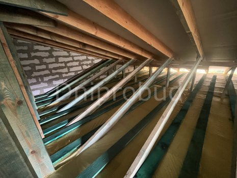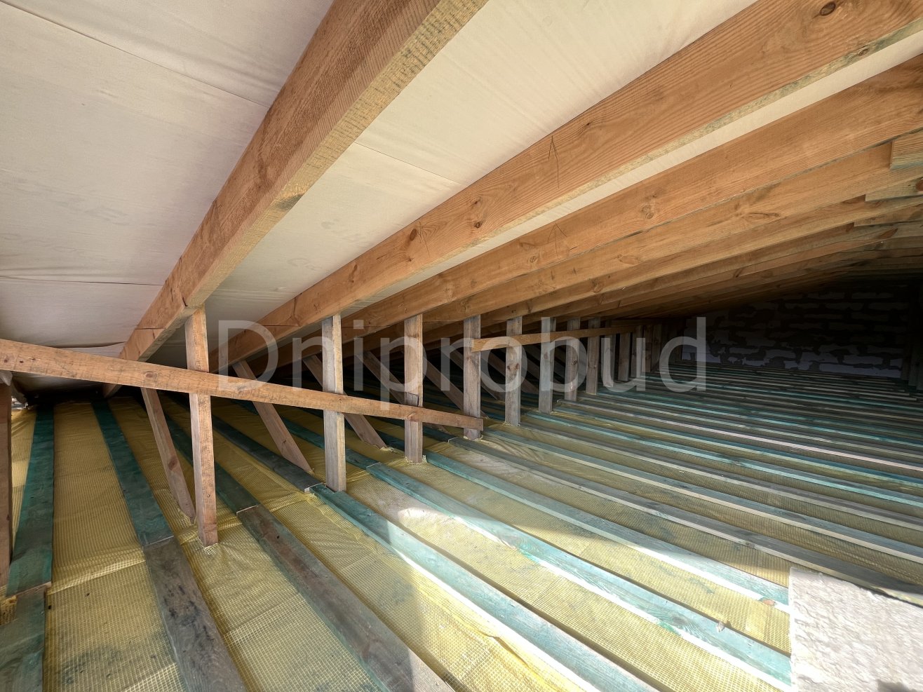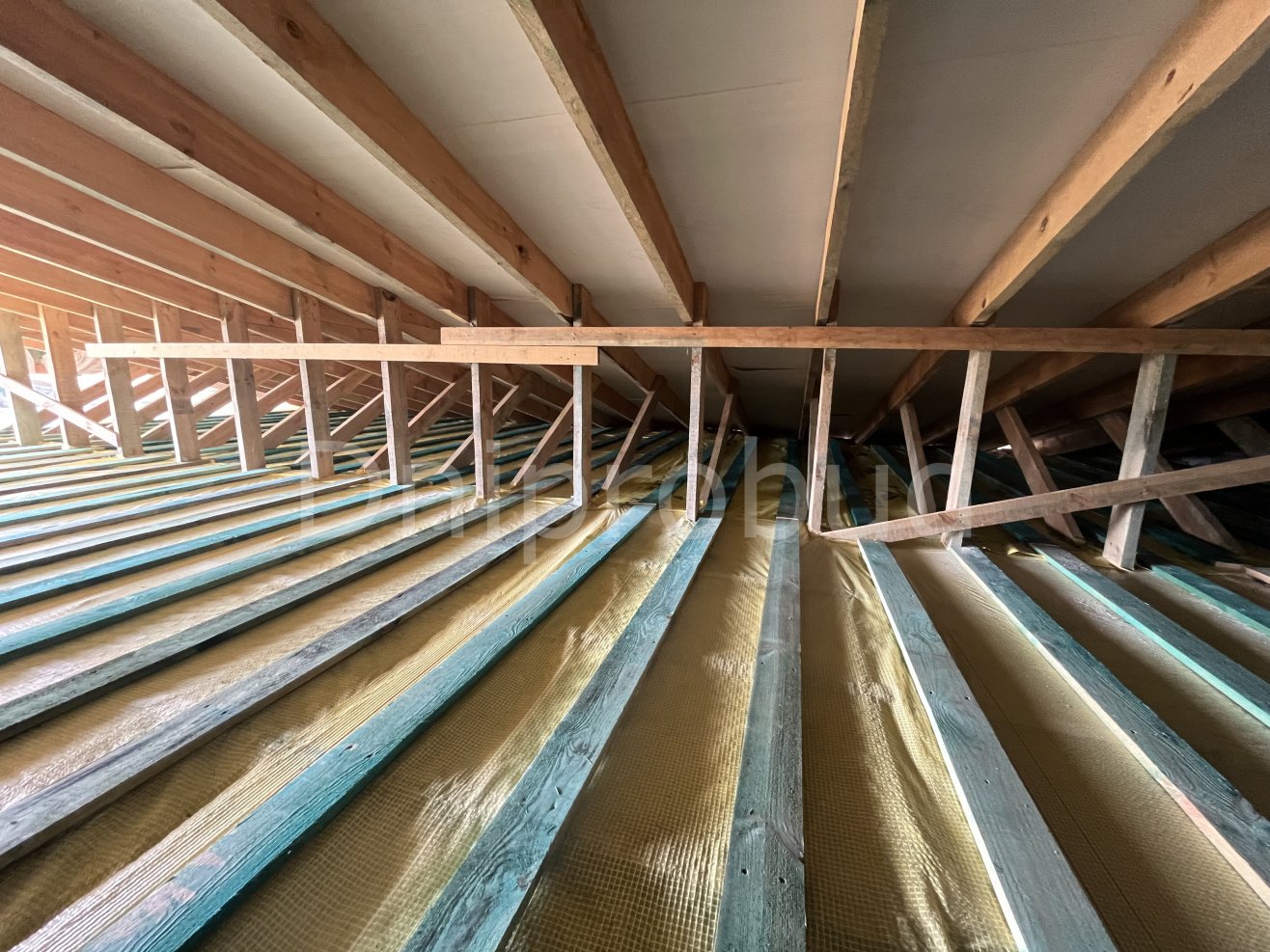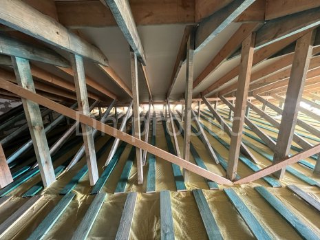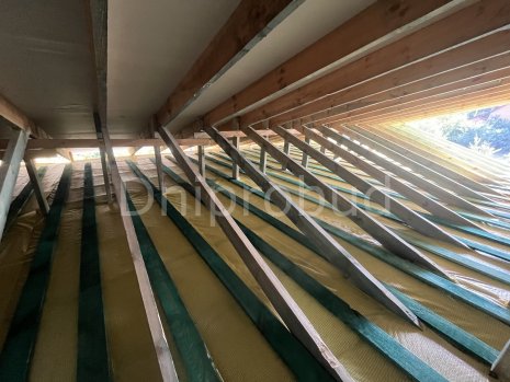 Перекрытия: деревянные балки. Утепление потолка минеральная вата 300 мм.