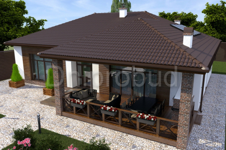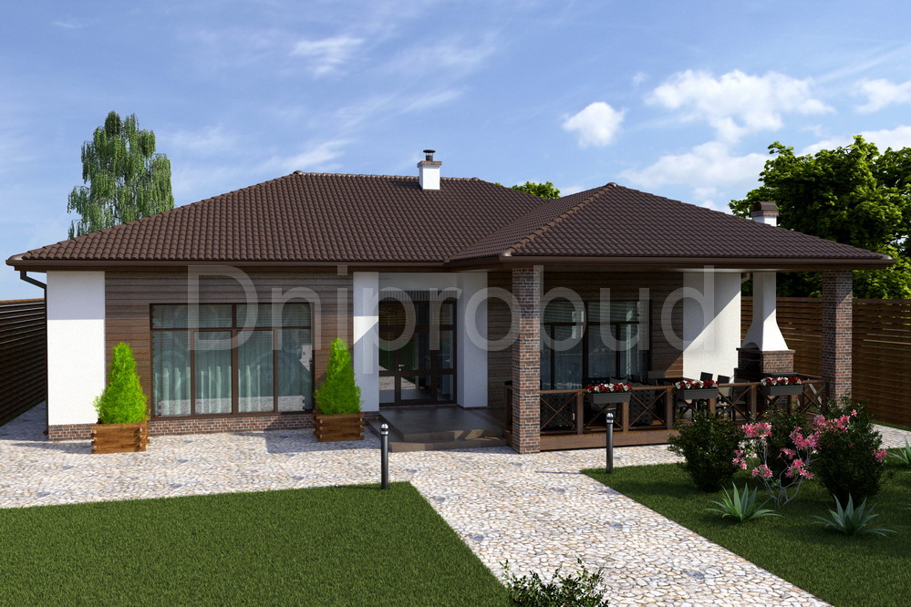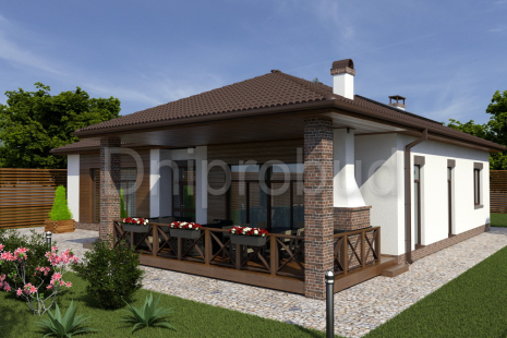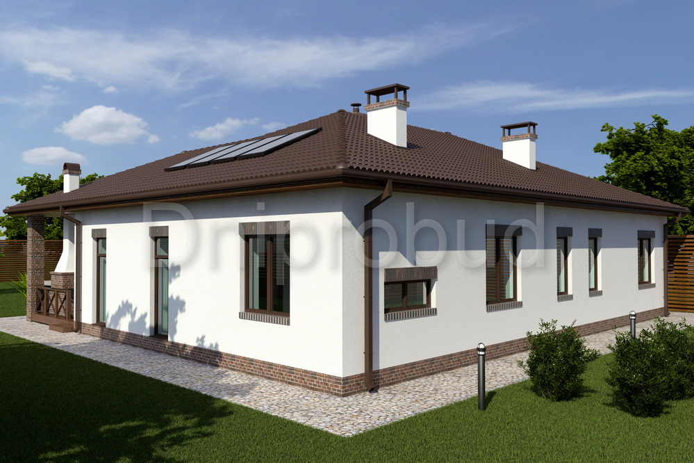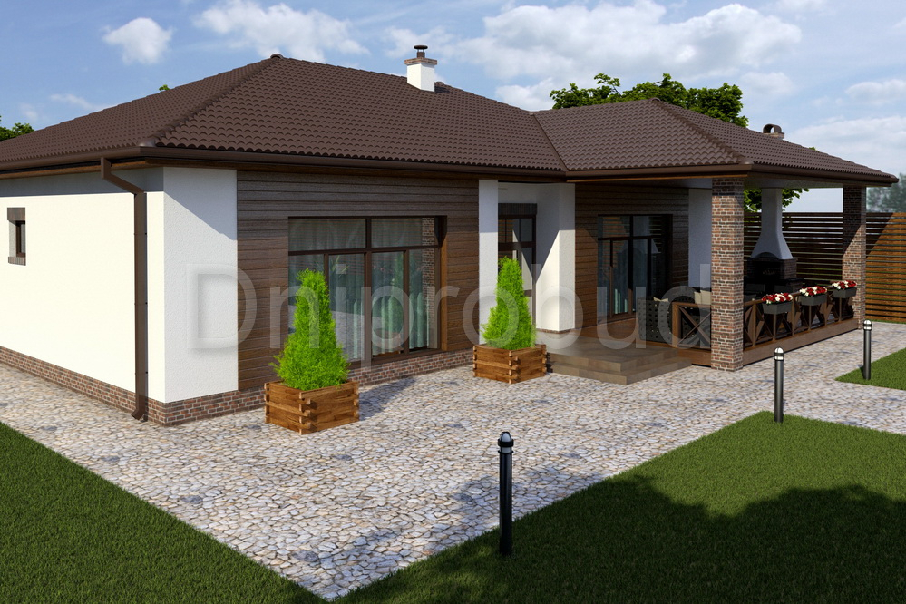Одноэтажный дом в с. Новоалександровка построен по индивидуальному проекту от компании Днепробуд.