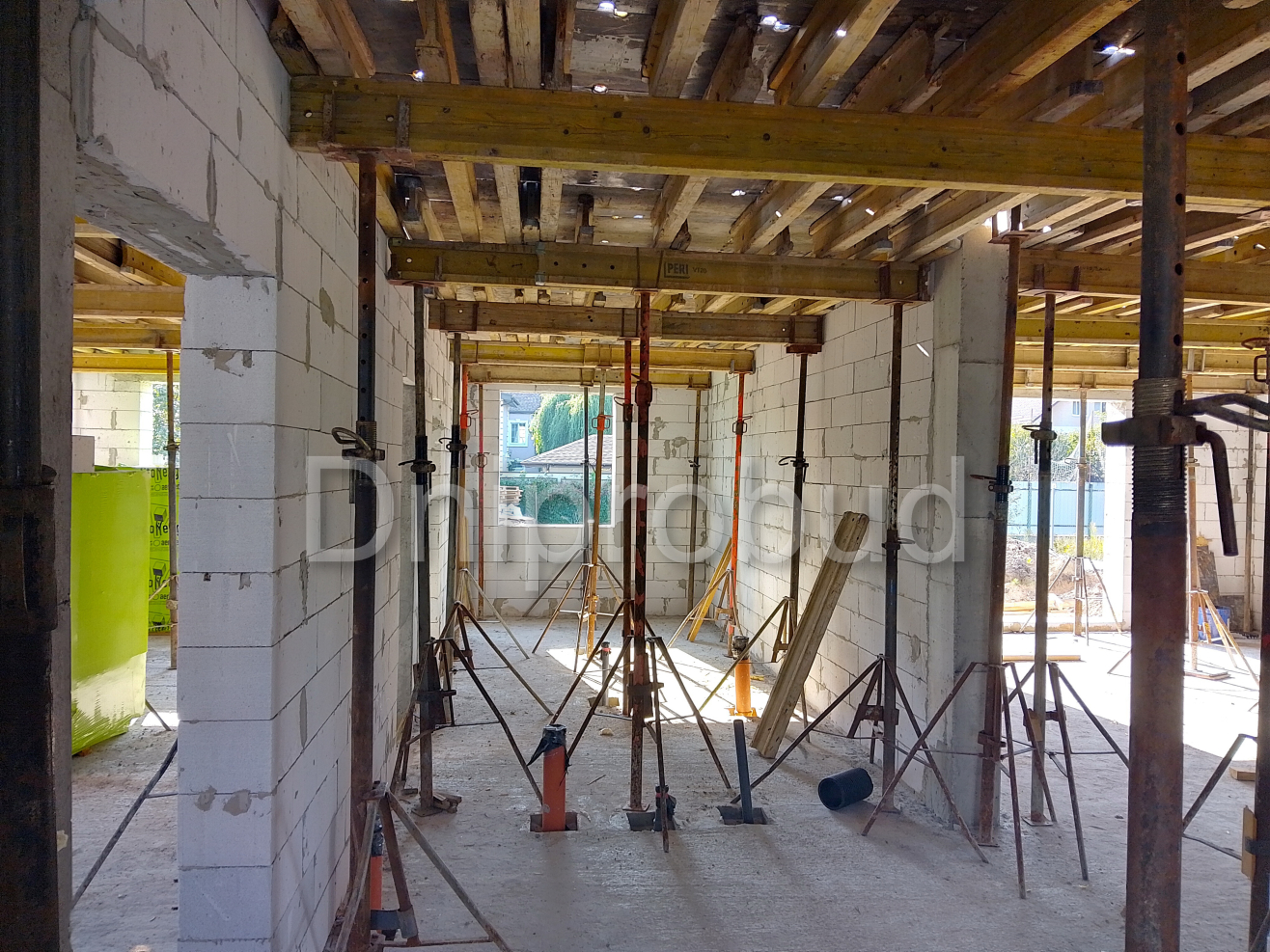 Так как здание строилось в районе высокого уровня грунтовых вод с большой вероятностью подтопления были проведены более подробные геологические изыскания. Это позволило принять решение по организации фундамента на сваях.