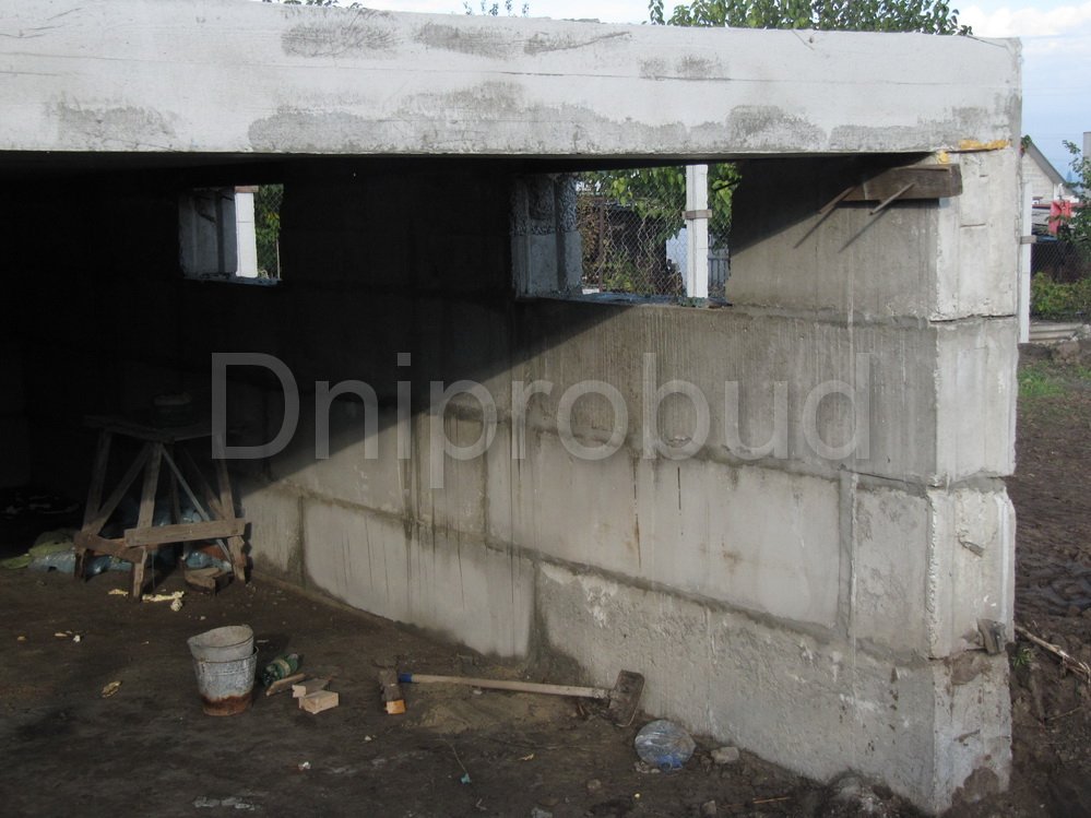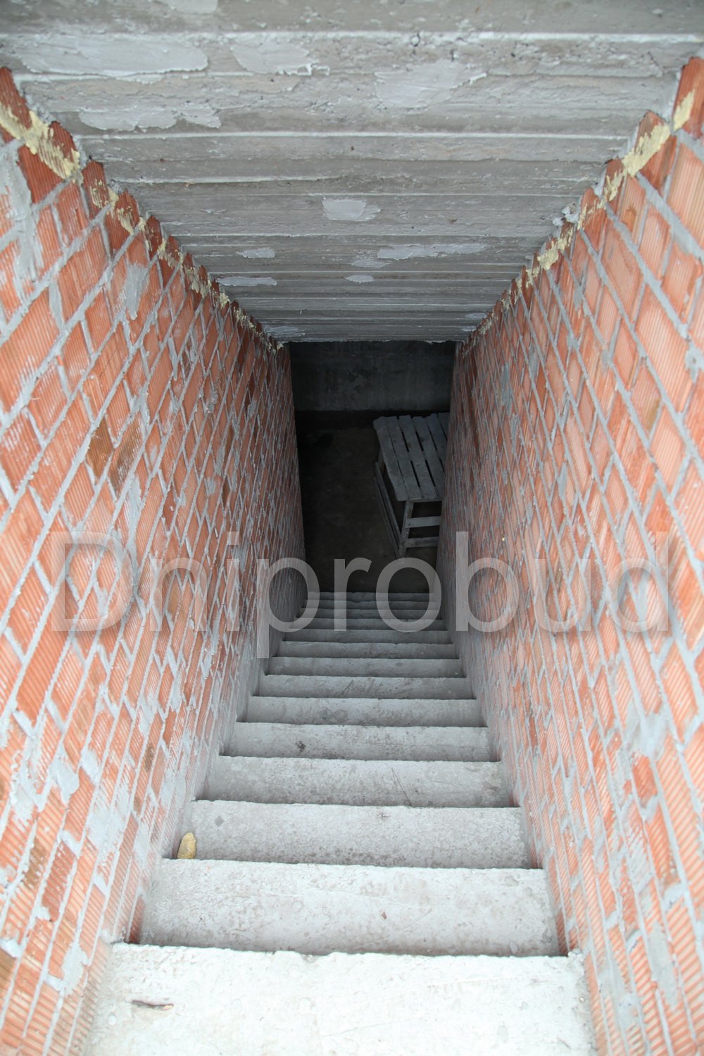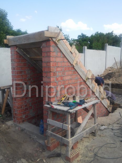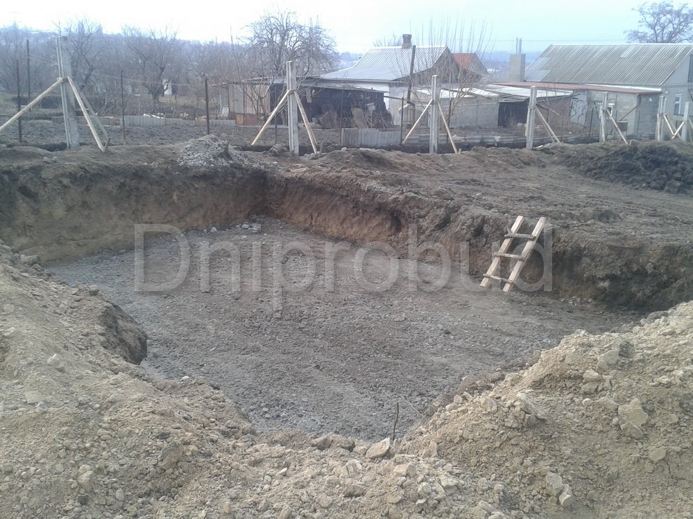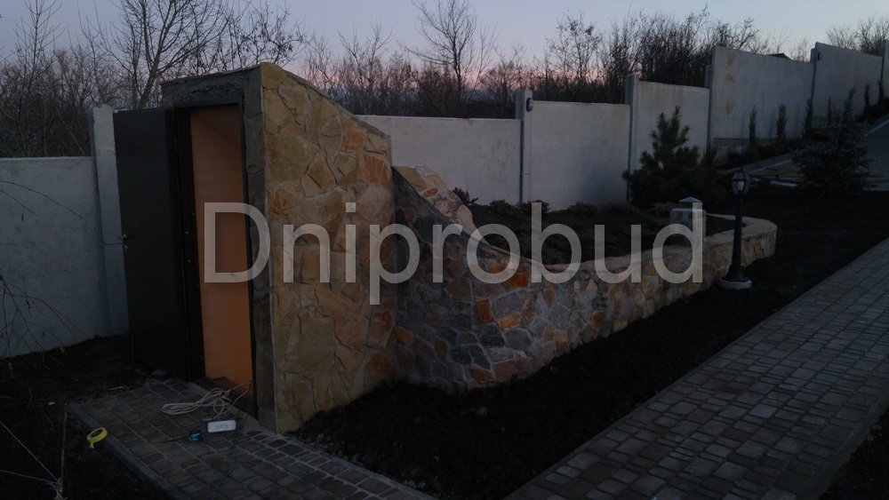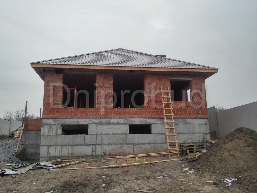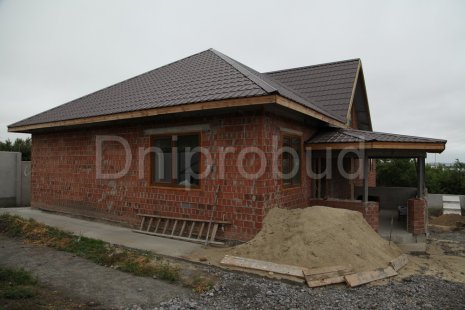 Дом в «районе Каменка», г. Днепр на склоне с большим перепадом высоты более 8 м по участку. Такой значительный перепад высот привел к необходимости и экономической целесообразности обустройства полуподвального помещения под половиной здания. В этом помещении разместились: гараж на два авто и котельная, которая содержит: электрокотел, систему очистки воды, твердотопливный котел шнекового типа.