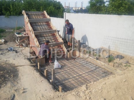 - Фундамент: ленточный по блокам ФБС под частью дома без подвала и монолитная железобетонная плита под подвальной частью.