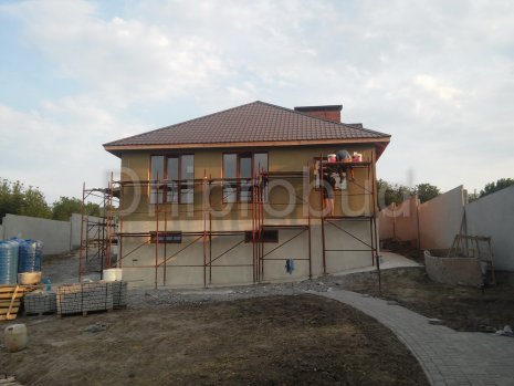 - Стены: керамоблок 2 NF толщиной 250 мм. Утепление стен пенополистиролом 150 мм и декоративной штукатуркой «баранец».