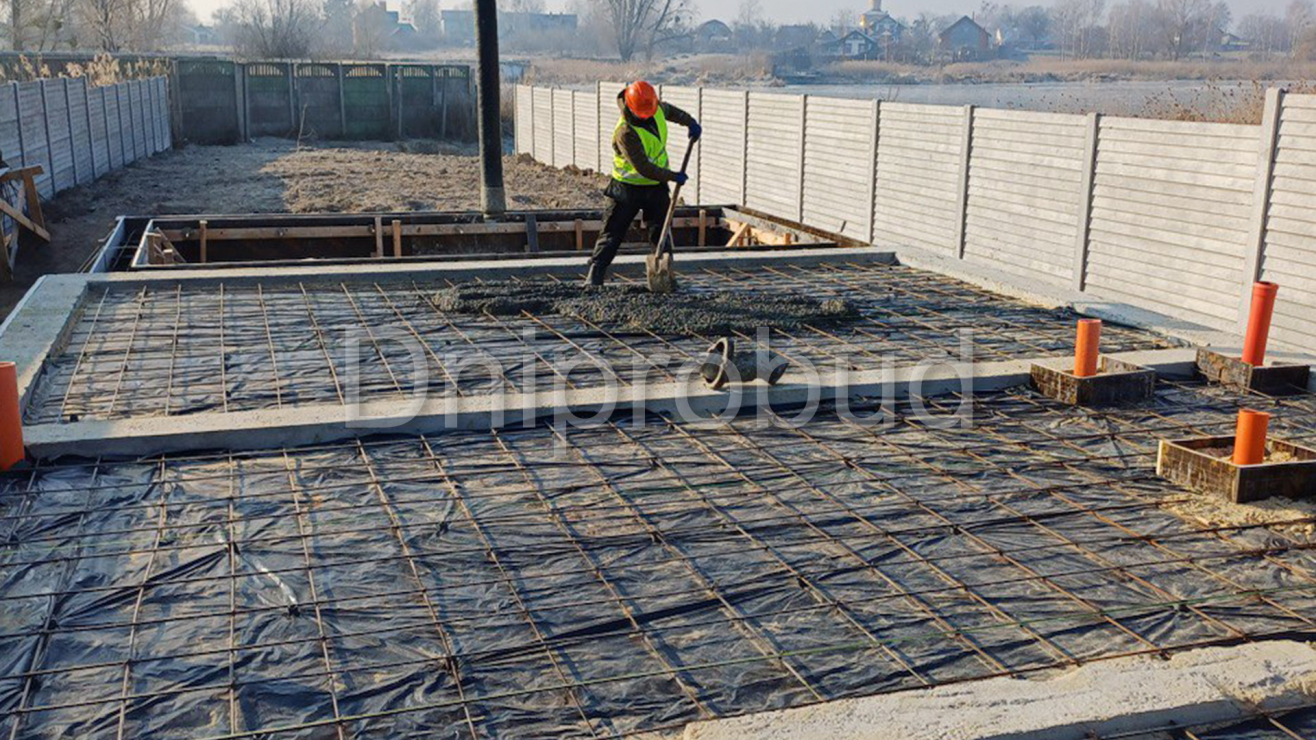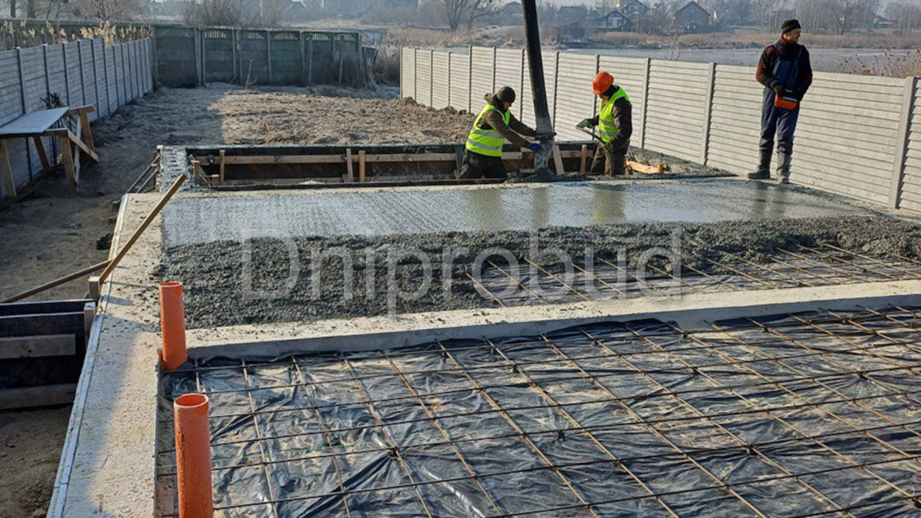 Дом возведён на свайном фундаменте с ростверком, выполнена обратная засыпка, обустроена канализация и подготовлен пол по грунту.