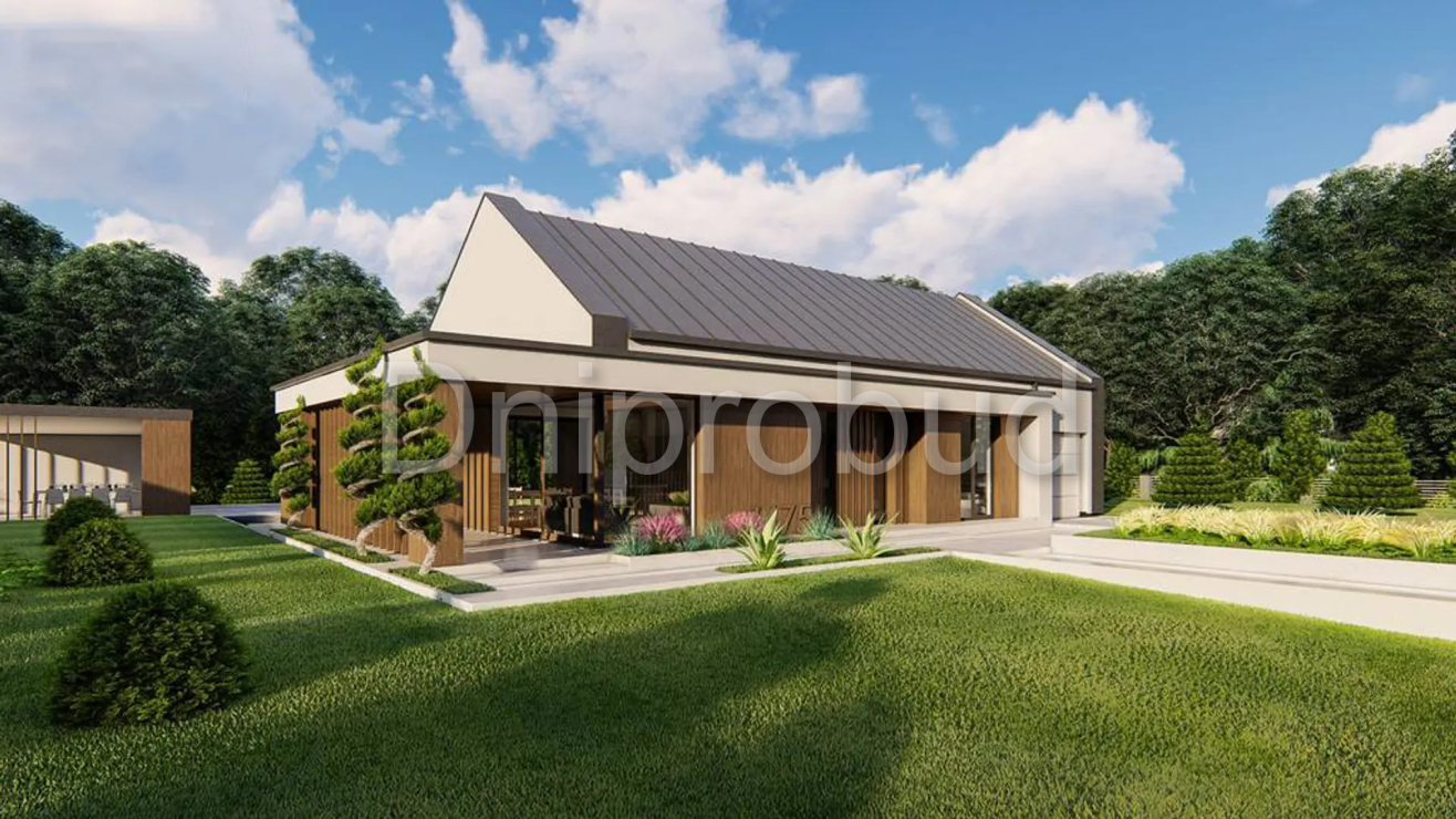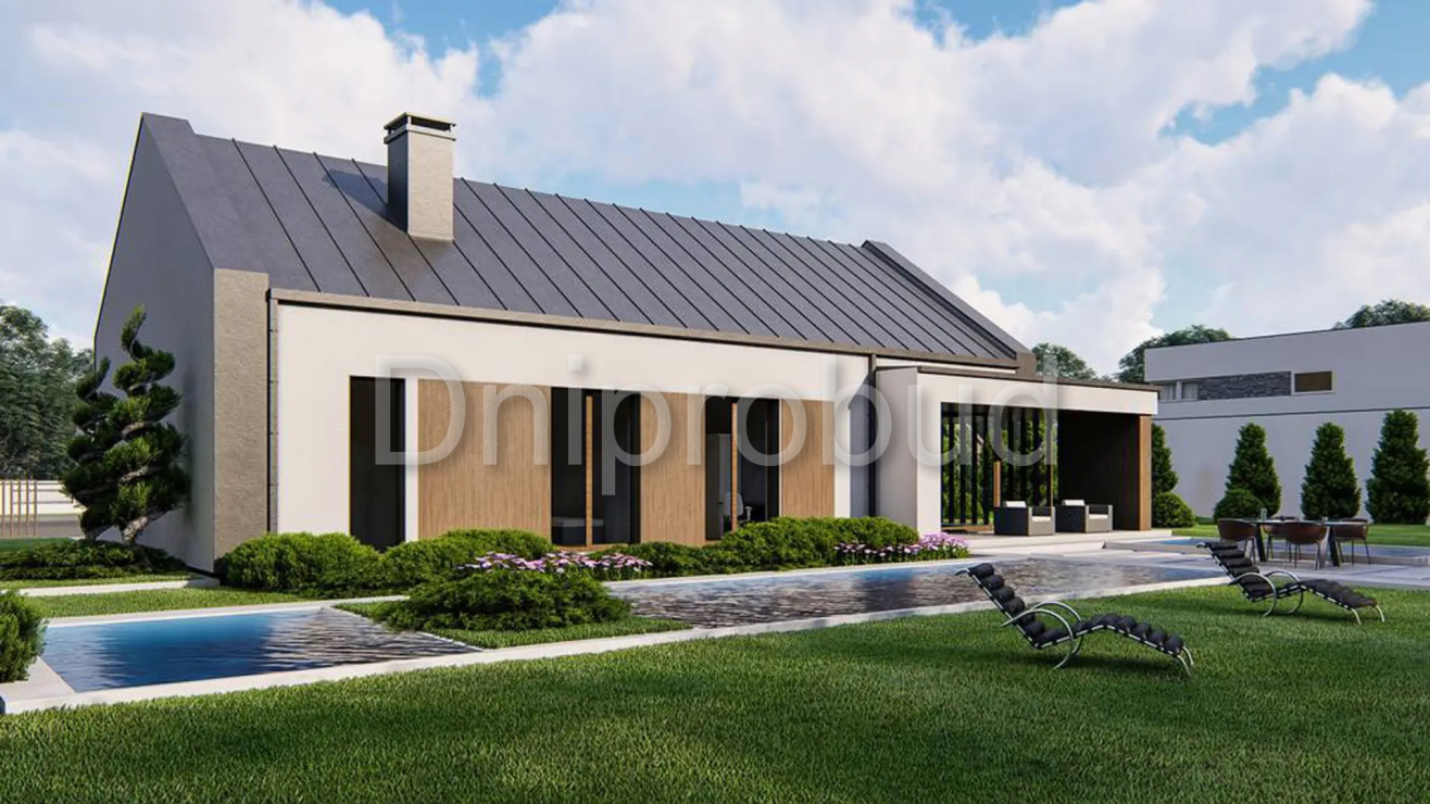 Дом в современном стиле, который находится в селе Чайки, Бучанского района, Киевской области, построен по типовому проекту от компании z500 U475 с изменениями. Общая площадь дома составляет 125.9 кв.м. В доме предусмотрено 4 спальни и 2 санузла.