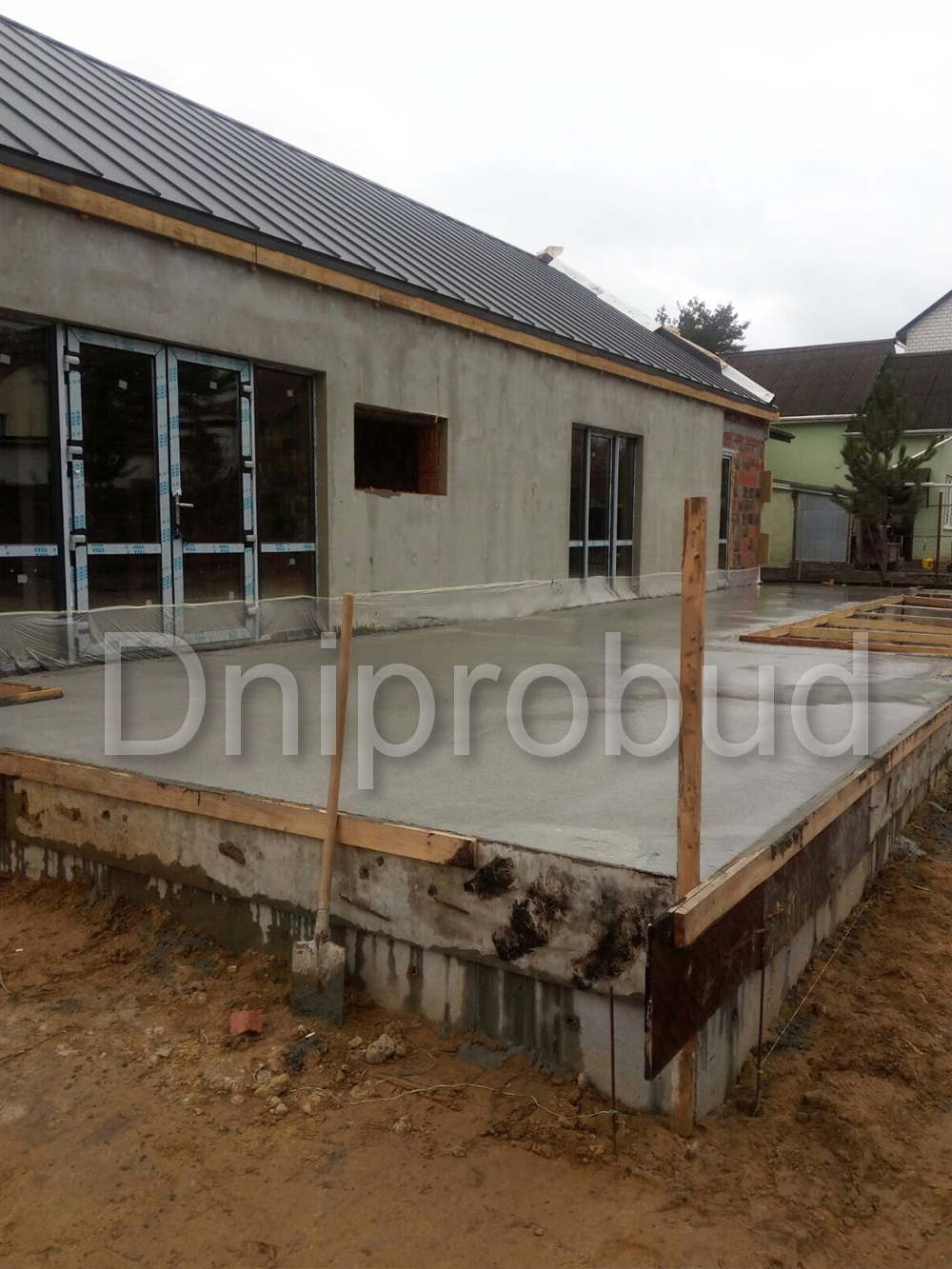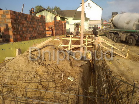 - Фундамент дома — ленточный, сборно-монолитный, железобетонный.
