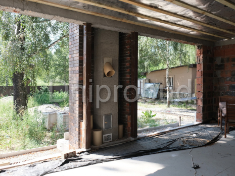 Камин в доме выполнен совместно с барбекю на террасе (двойная дымоходная система).