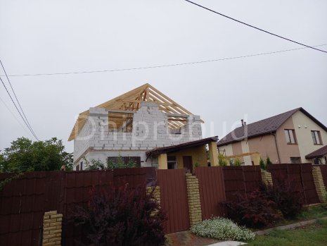- Кладка стен второго этажа с устройством усиленного армированного пояса и устройством новой кровли над домом и парковкой.