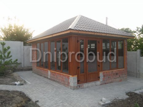 Строительство в Днепре просторной солнечной беседки со множеством окон. Барбекю с тандыром. Читать больше